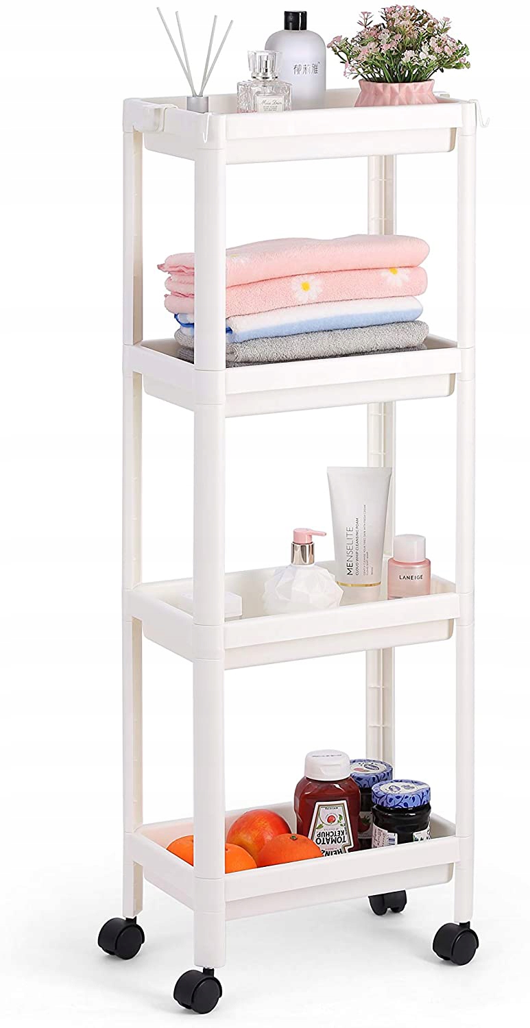ПЕРЕДВИЖНОЙ ШКАФ ДЛЯ ВАННОЙ 4 ПОЛКИ КНИЖНЫЙ СТЕЛЛАЖ НА КОЛЕСАХ