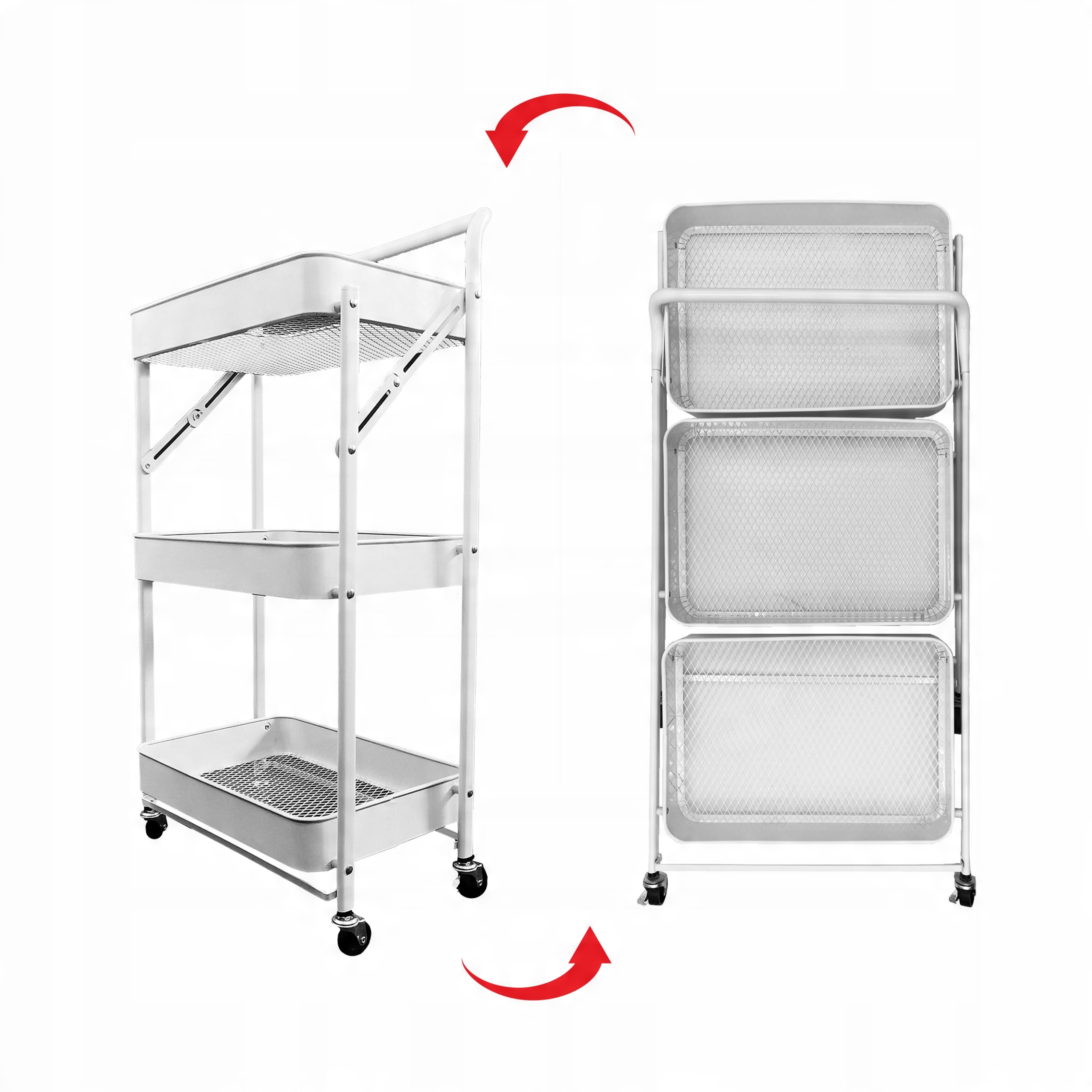 МОБІЛЬНА СКЛАДНА ПОЛИЦЯ З РУЧКОЮ 3 ПОЛИЦІ КУХНЯ ВАННА КОЛЕСА БІЛИЙ ВІЗОК