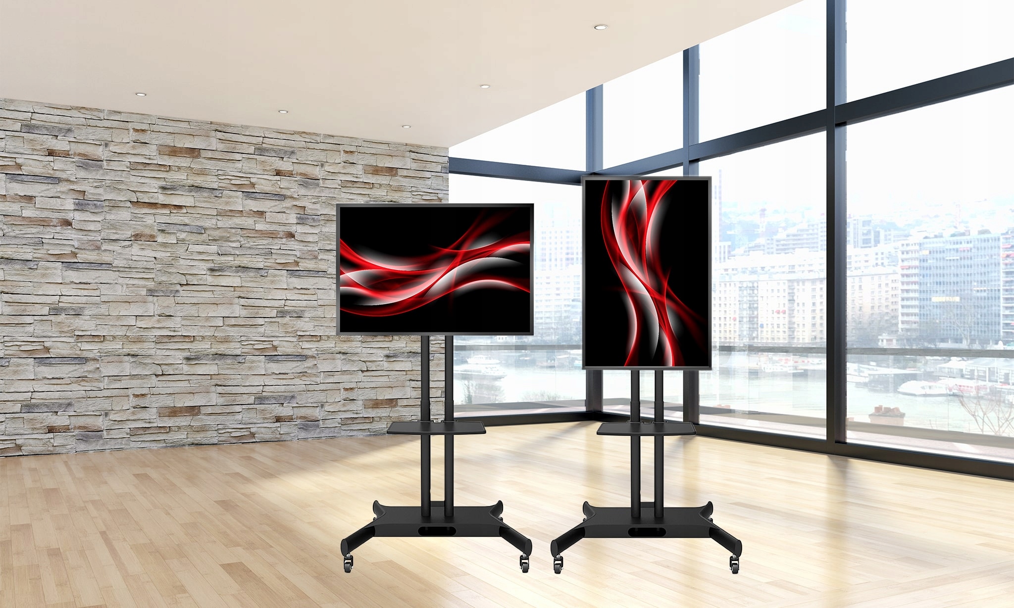 Стойка позволяет размещать телевизор как в горизонтальном, так и в вертикальном положении.
