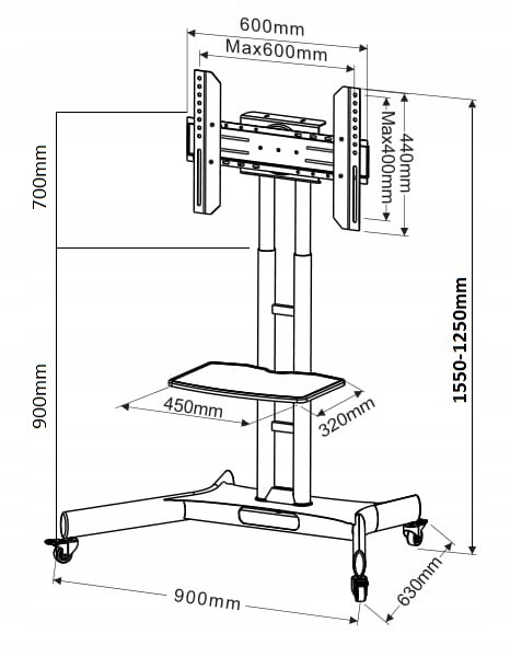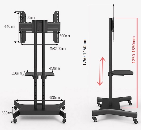 Мобильная телескопическая подставка на тележке для телевизора