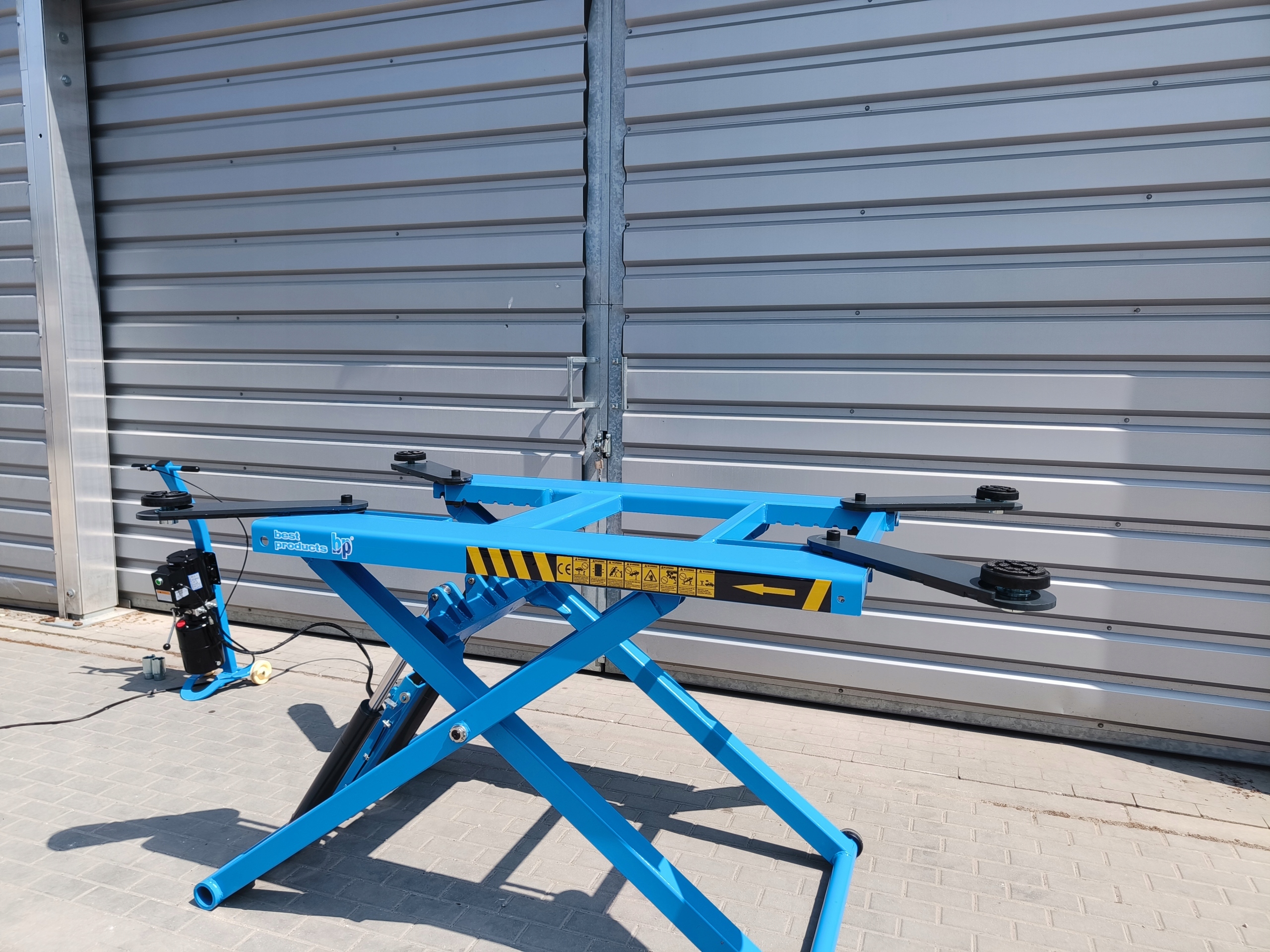 Ножничный подъемник с низкой рамой (1200 мм). Идеально подходит для шиномонтажных, кузовных и покрасочных цехов. Подъемные рычаги выдвигаются изнутри, что обеспечивает полный доступ к элементам кузова.