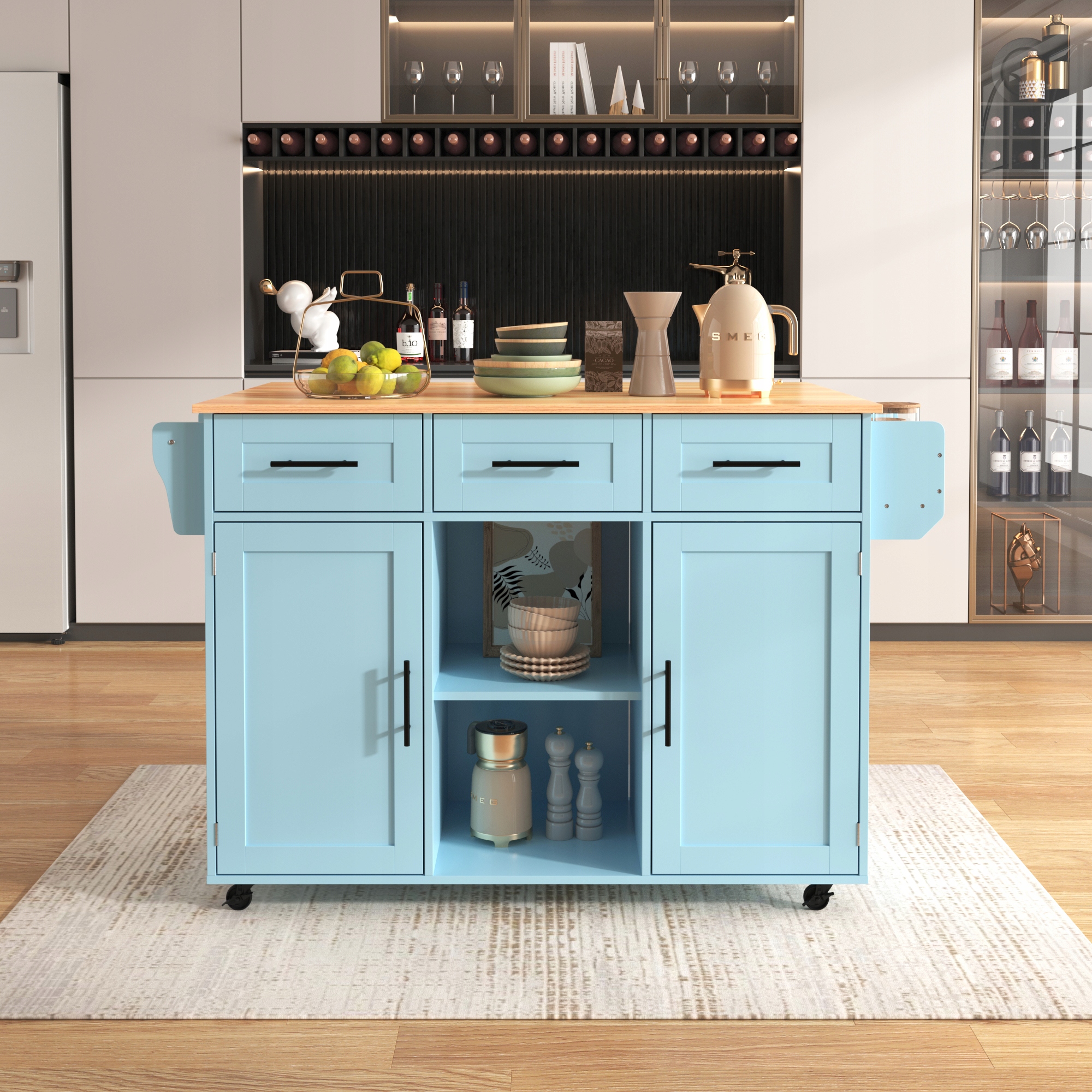 Высококлассная тележка для кухонного острова (складная столешница + многофункциональное отделение для хранения)