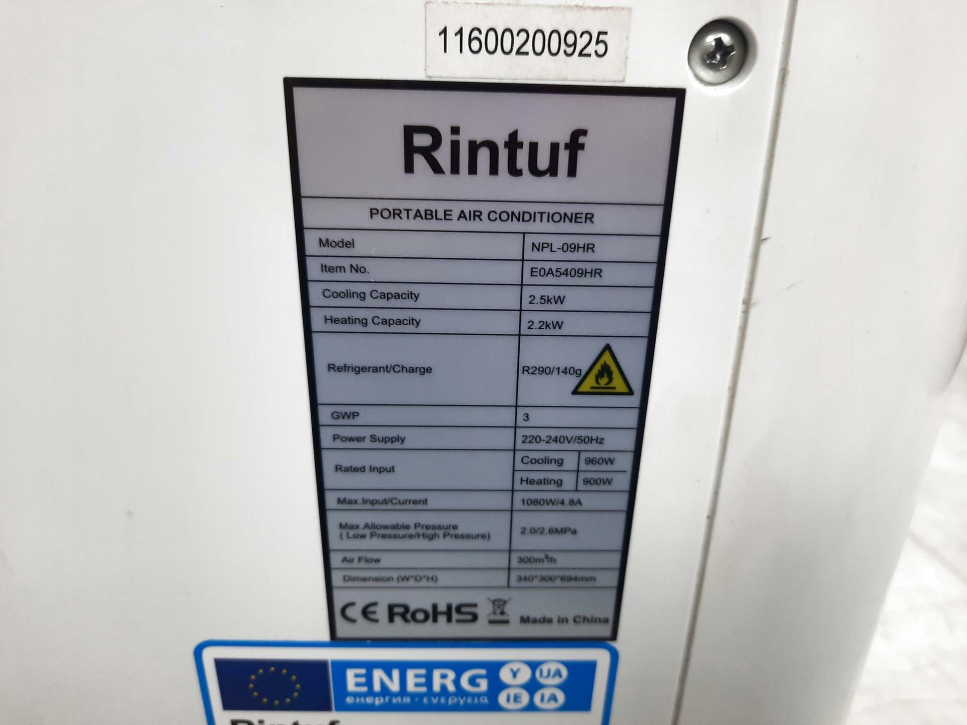 Мобільний кондиціонер Rintuf NPL-09HR 2500W білий