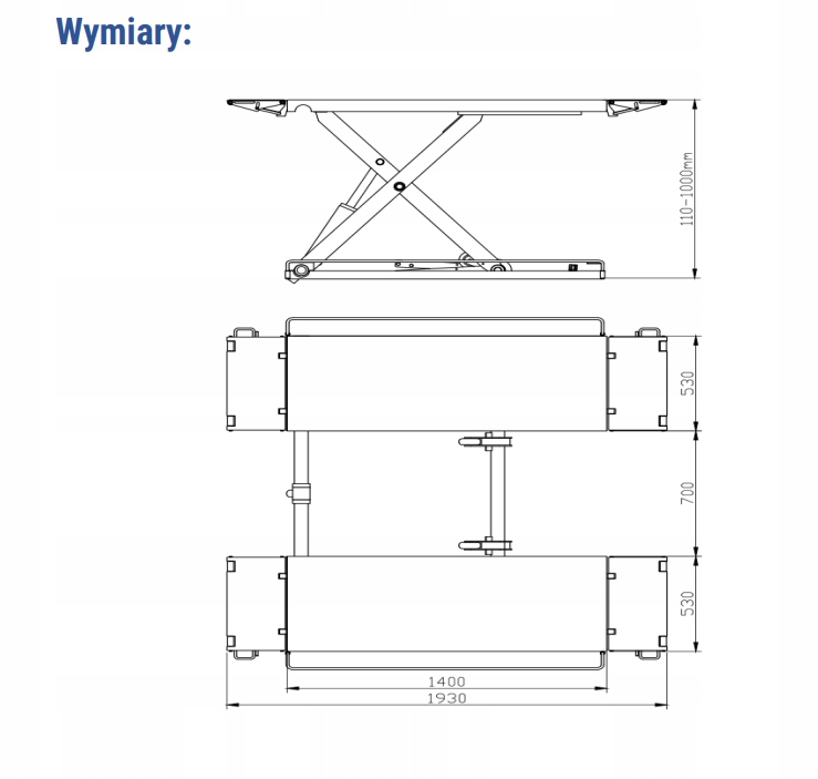 - Общая ширина подъем: 1760 [мм] + блок управления