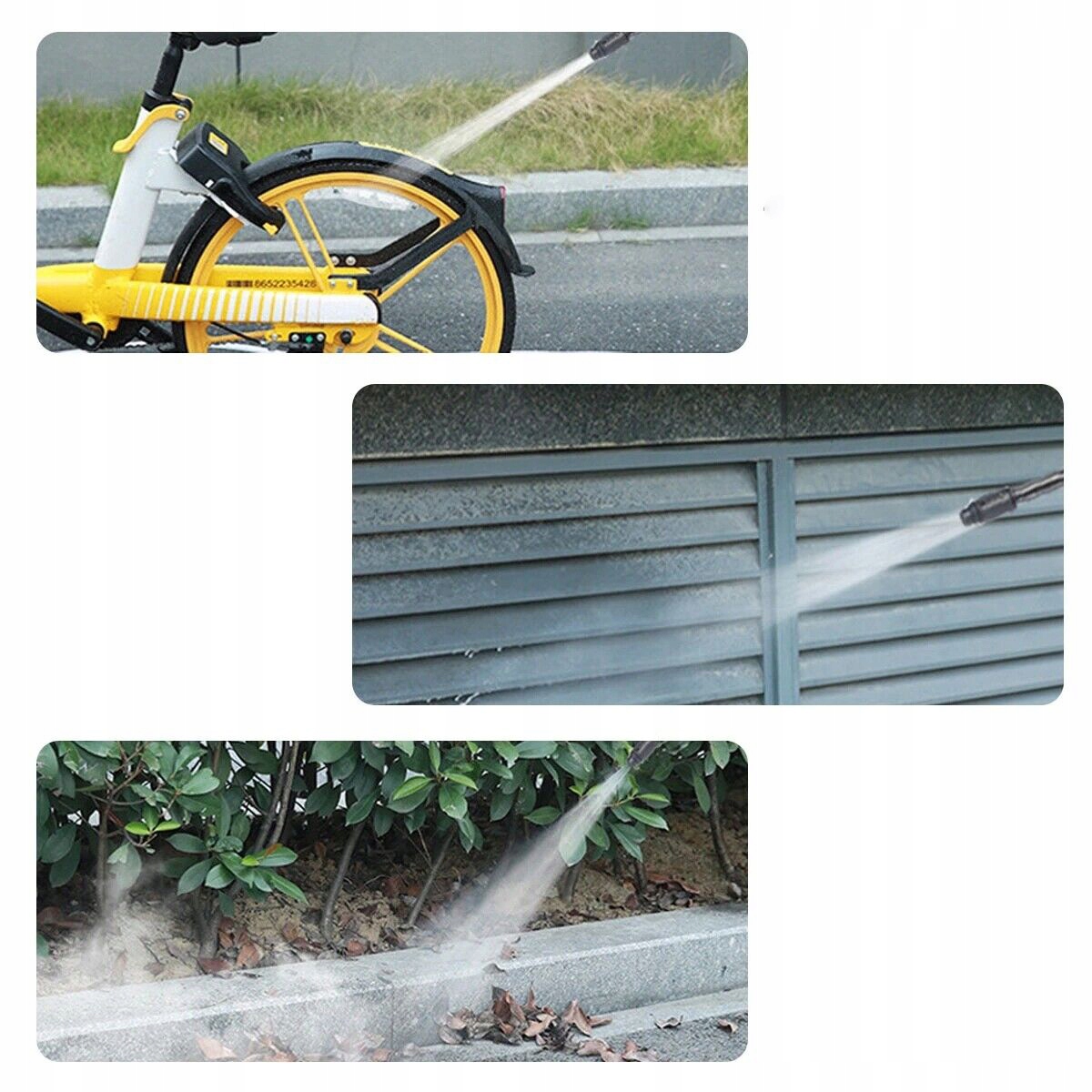 Прямая очистка стойких пятен под высоким давлением. Быстрая чистка с большой поверхностью в форме вентилятора. Специальный пенопластовый контейнер быстро производит пену и может быть непосредственно установлен на сопелах для использования.