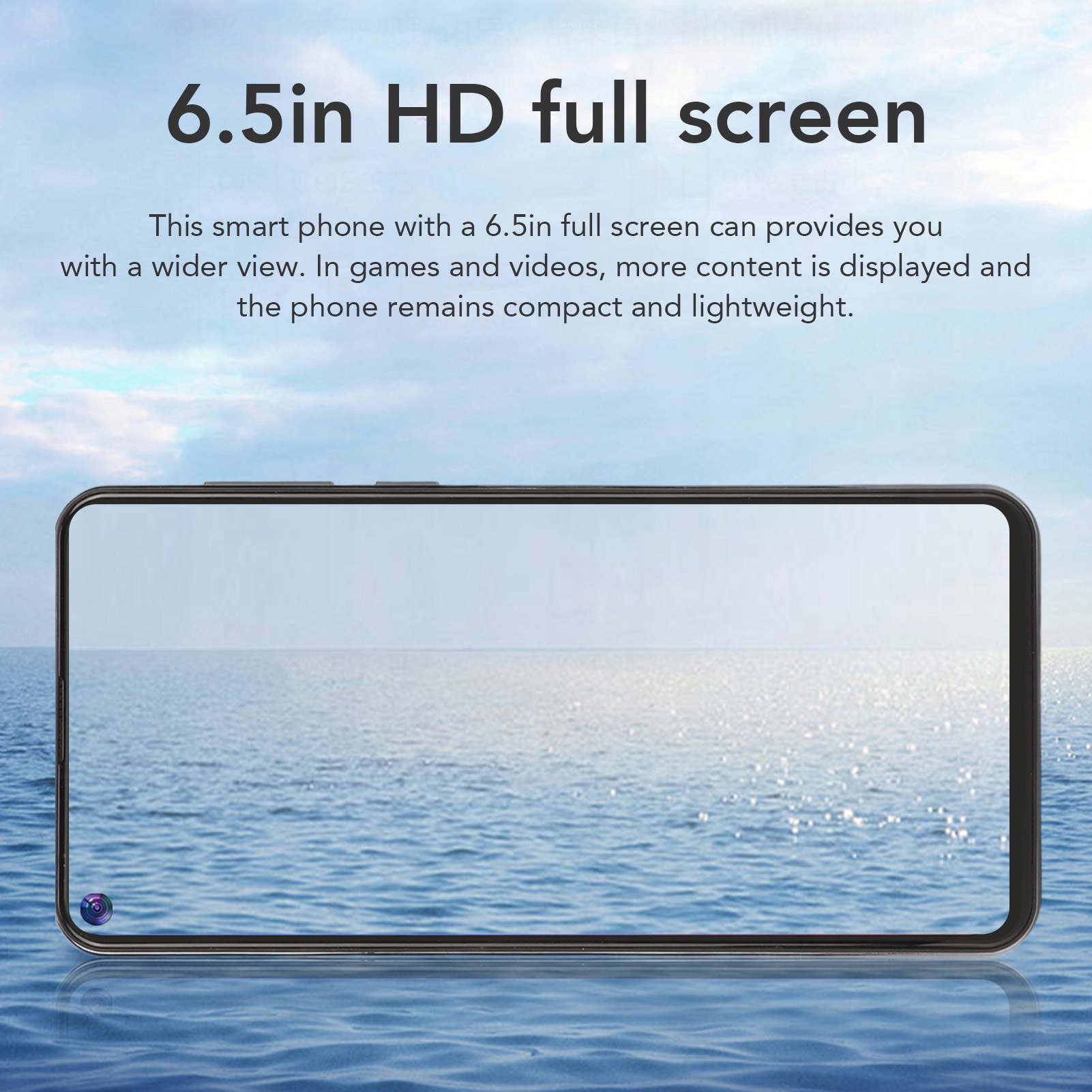 1. 6,5-дюймовый полноэкранный HD: этот смартфон с 6,5-дюймовым полноэкранным режимом предлагает вам более широкий обзор. В играх и фильмах отображается больше контента, а телефон остается компактным и легким.