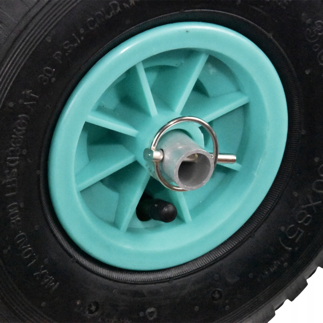 Легкая и практичная транспортировка каяка/лодки благодаря легкой и удобной алюминиевой конструкции. Большие колеса позволяют легко передвигаться даже по труднопроходимой местности. Легкосъемные колеса позволяют быстро разложить коляску и транспортировать ее в каяке.
