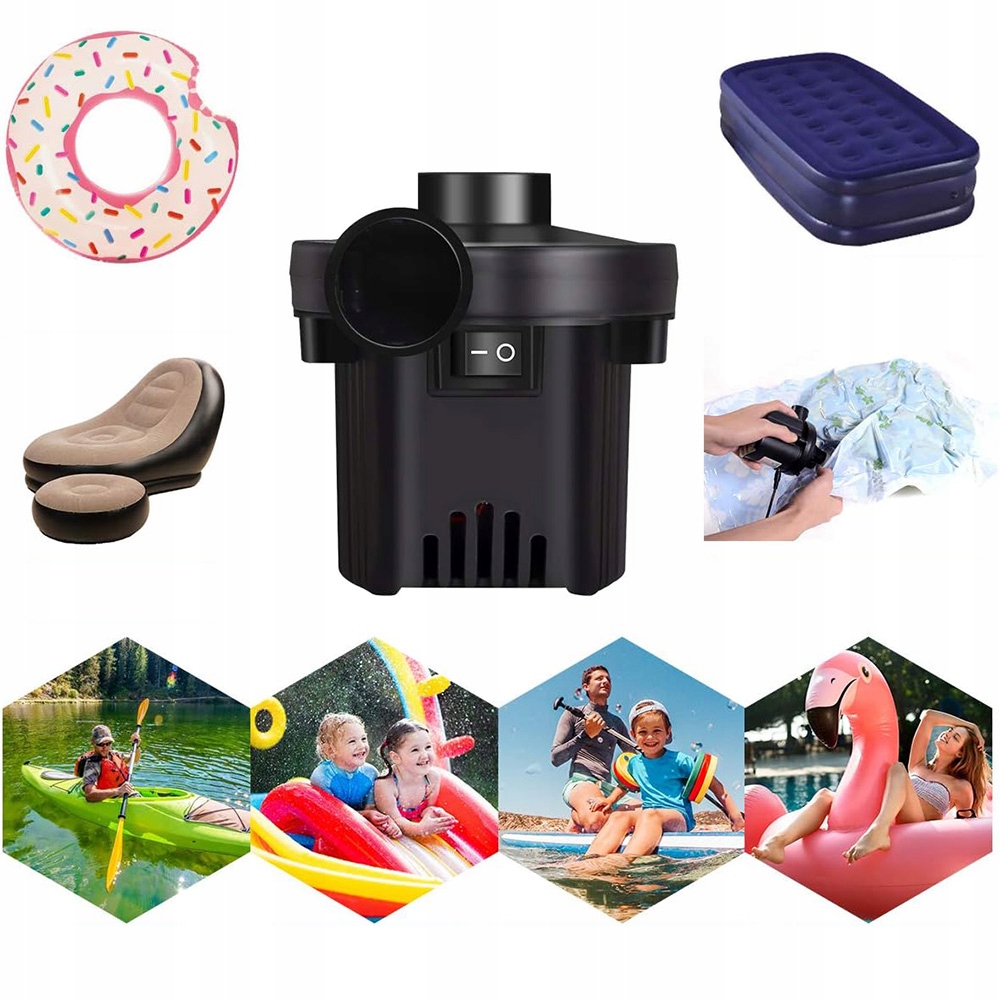 Электрический воздушный насос подходит для надувных матрасов, бассейнов, водяных слоев, плавательных колес, пляжных игрушек или других надувных игрушек. Примечание: не подходит для продуктов с игольчатым клапаном, таких как воздушные шары, баскетбольные шарики, шарики для громкости/йоги.