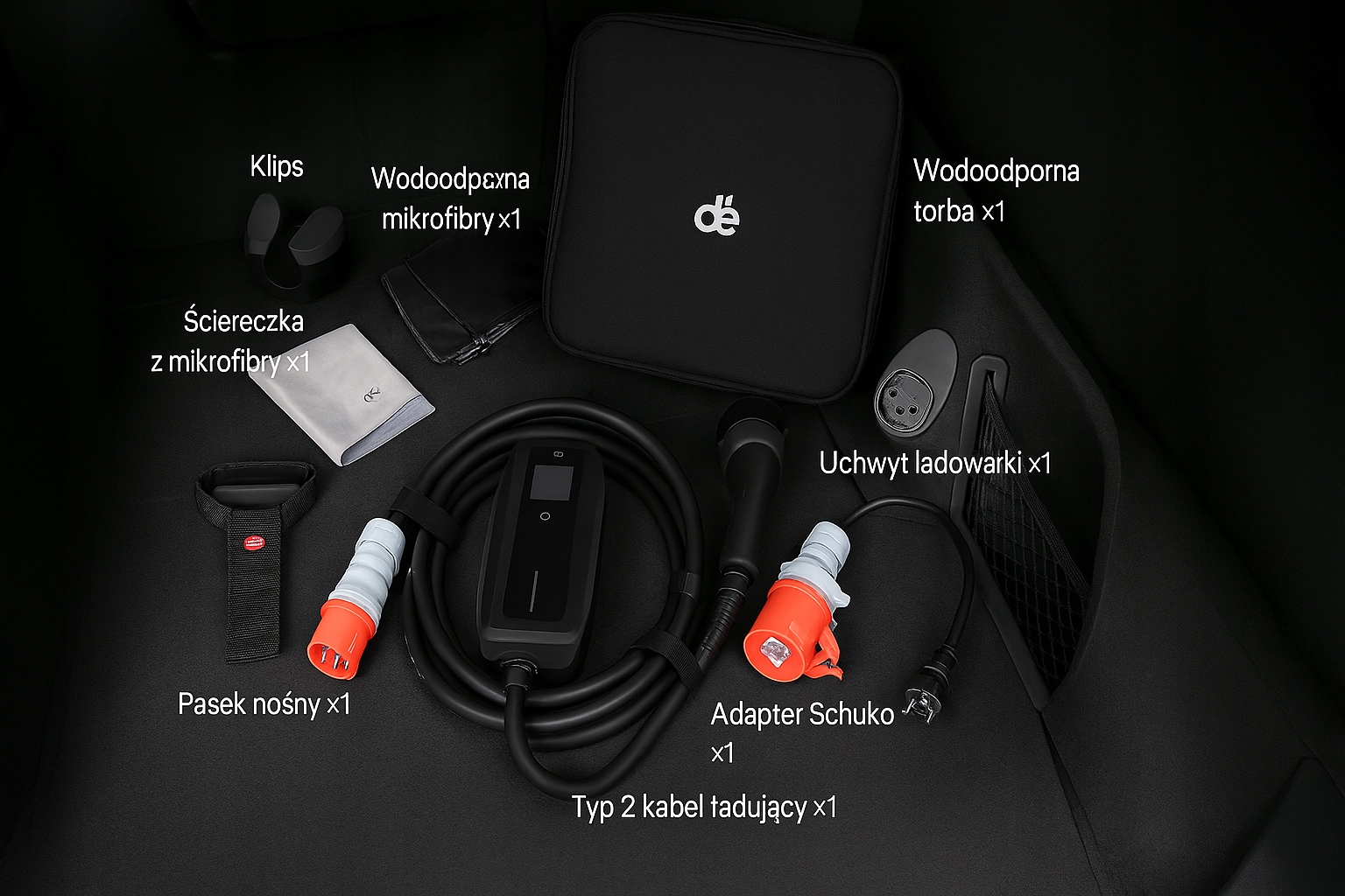 Мобильное зарядное устройство dé 11 кВт (Тип 2, CEE 16A) в версии с кабелем длиной 10 метров — надежное и надежное решение для водителей электромобилей, которым необходимо компактное, безопасное и удобное зарядное устройство дома и во время поездок.