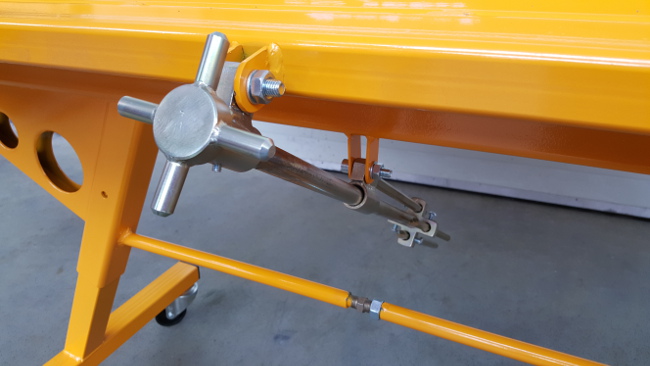 - ХОДОВАЯ СИСТЕМА ГИБОЧНОЙ МАШИНЫ - применение поворотных колесных пар с тормозом позволяет для свободного перемещения гибочной машины.