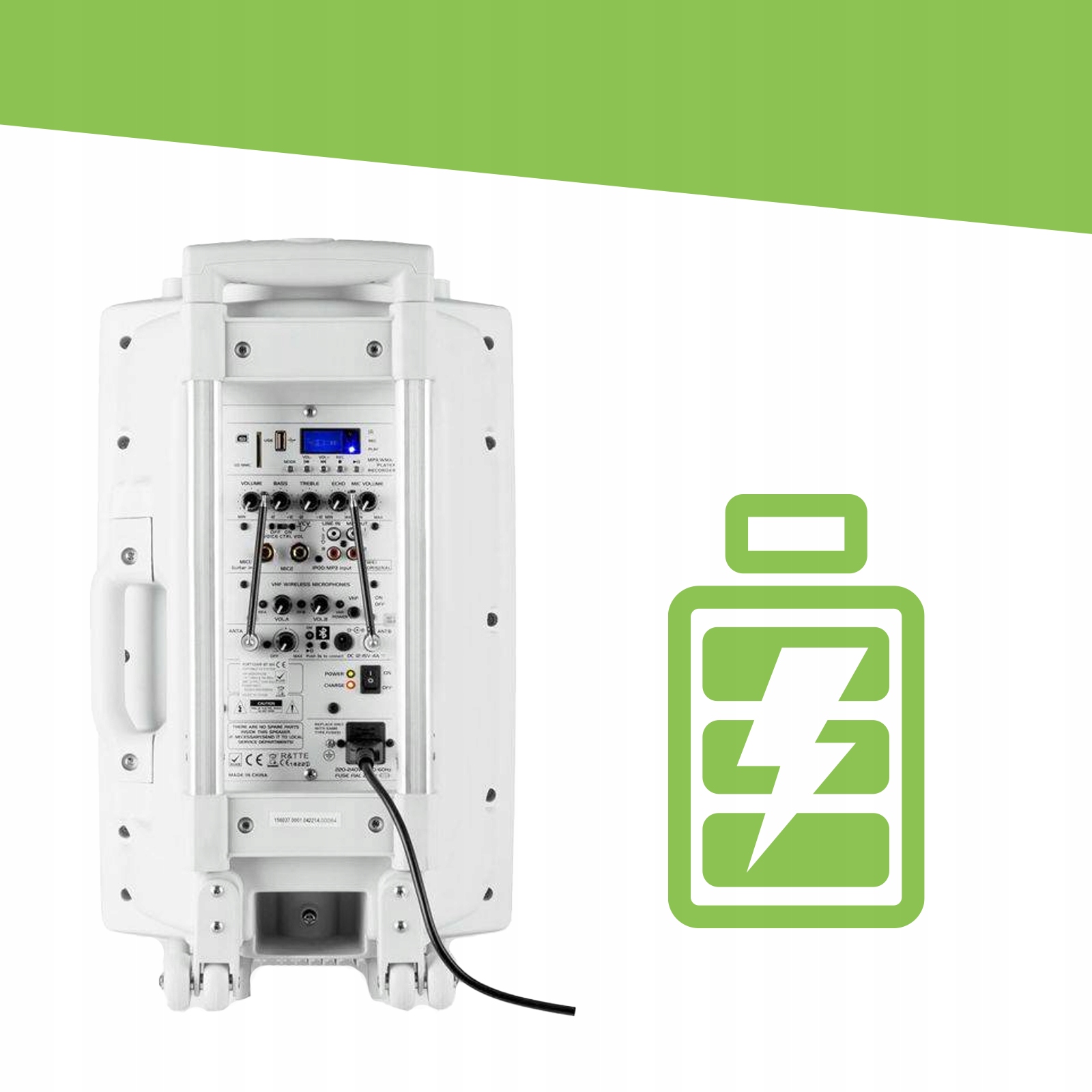 идеально подходит для мобильных приложений благодаря встроенному аккумулятору. Подходит, среди прочего: для проведения караоке-вечеринок. В комплект входит многофункциональная активная колонка, два беспроводных микрофона, беспроводной пульт дистанционного управления и кабели. Устройство построено на эффективном 12-дюймовом низкочастотном динамике, пиковая мощность колонки составляет целых 700Вт.
