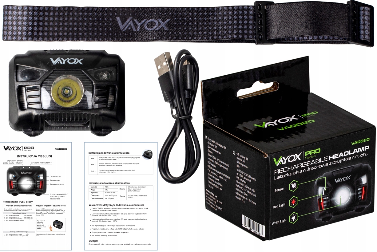 MOCNA LATARKA CZOŁOWA CZOŁÓWKA LED AKUMULATOROWA CZUJNIK RUCHU USB-C IP66