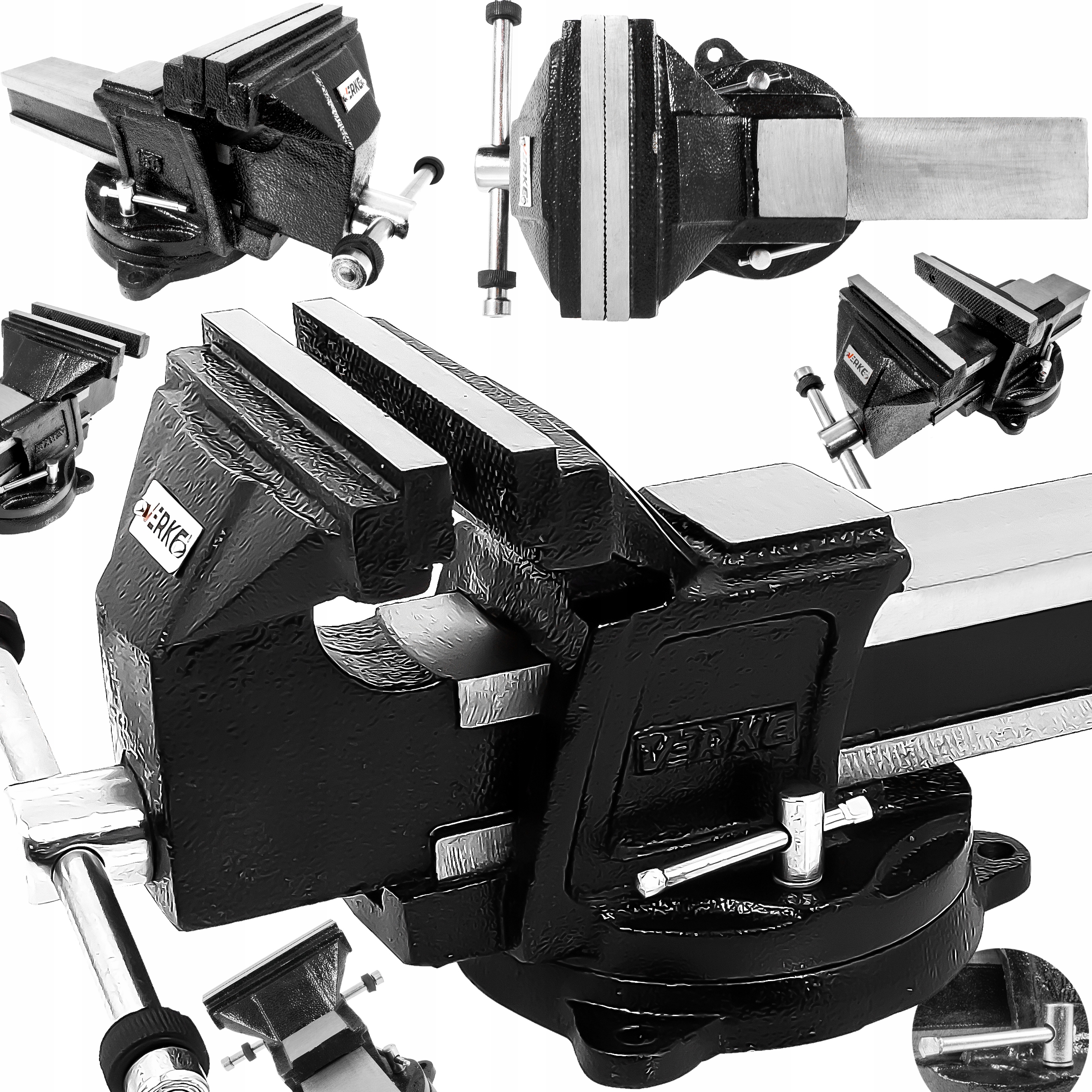 Изготовлены из высококачественного чугуна. Челюсти затвердели и заточились. Зажим направляется призмами, которые обеспечивают стабильное и точное ведение. Вращающееся на 360° основание позволяет менять угол в горизонтальной плоскости. Тиски, соединенные с наковальней, создают прочную компактную конструкцию. Рифленые губки обеспечивают стабильный захват. Возможность регулировки силы давления с помощью ручки. Заводская защита маслом.