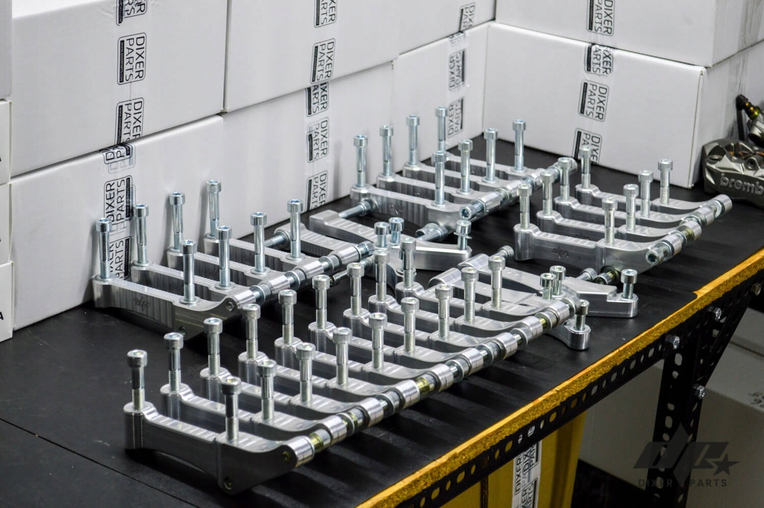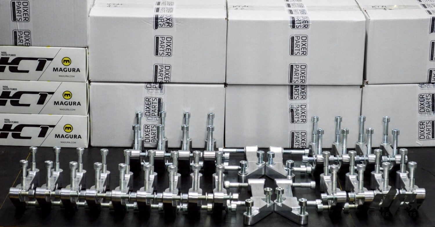 - 1x адаптер суппорта (левая сторона), подготовленный для установки суппорта Brembo с расстоянием между монтажными отверстиями 100 мм