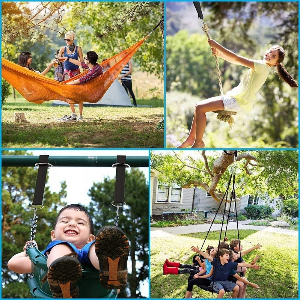 ✔️ Безопасно для деревьев и конструкций: Ремни не оставляют повреждений и следов крепления на деревьях, террасных балках или детских площадках.
