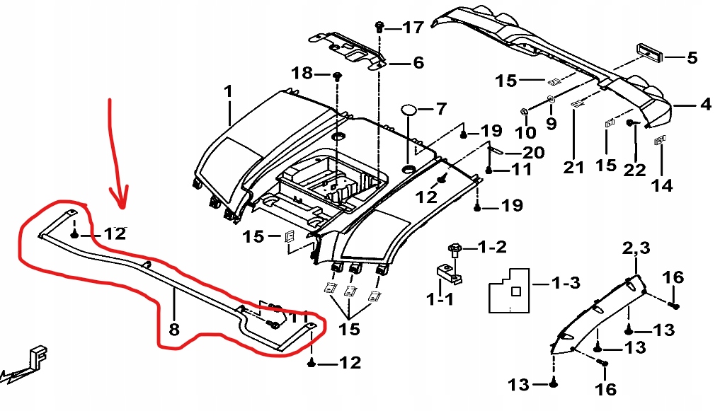 MOCOWANIE STELAŻ WSPORNIK PLASTIKU TYŁ TYLNEGO Quad ATV TGB BLADE 425cc