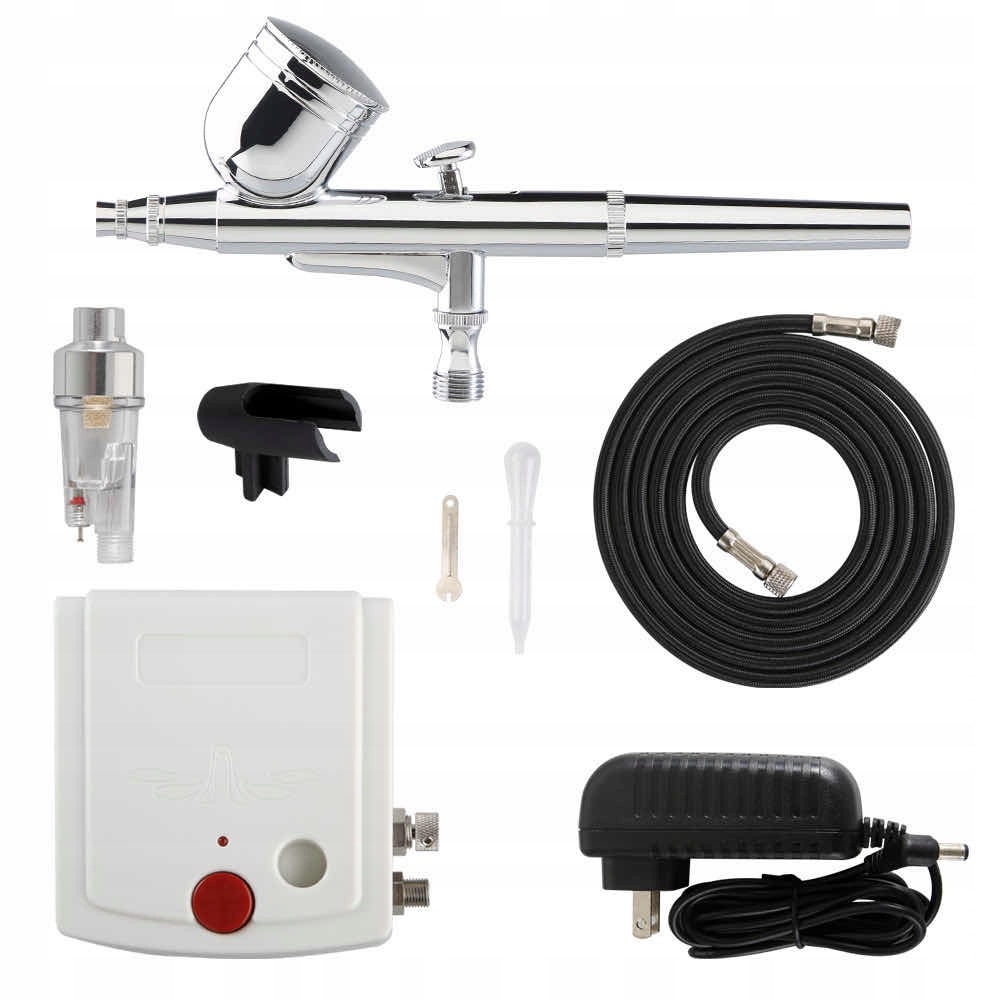 • Содержание набора: аэрограф, компрессор, различные аксессуары для очистки и обслуживания, ручка 360 °, воздушный фильтр