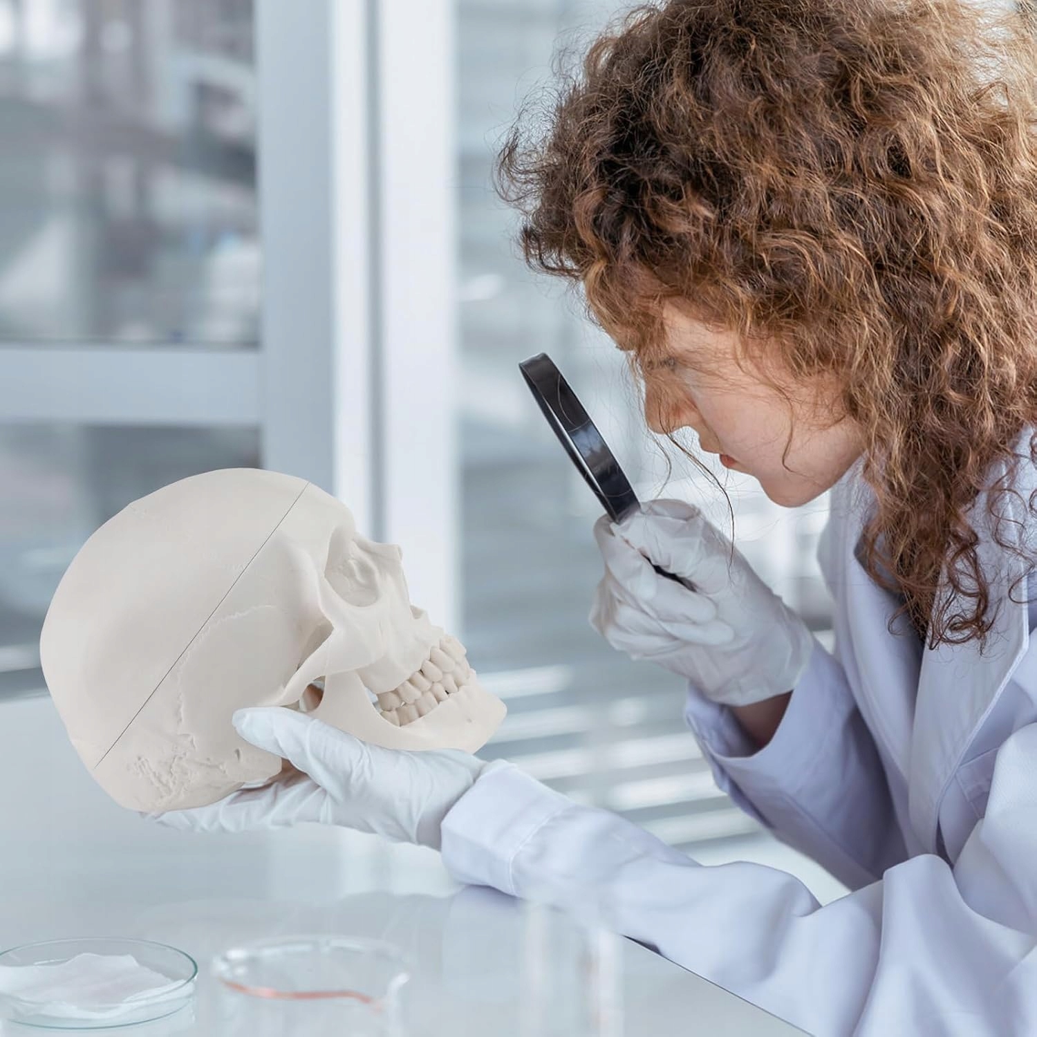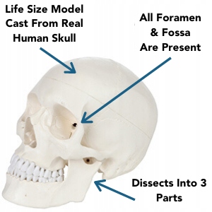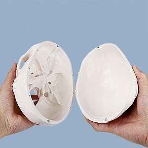 - Модель человеческого черепа состоит из 3 частей: основы черепа, челюсти и черепа. Верхняя часть черепа удаляется, прочно удерживается благодаря магнитам. У него нет прявок, как в других моделях. Благодаря этому он подвижен и может быть представлен для жевания. При необходимости вы можете открутить челюсть. Внутренняя область черепа имеет подробную анатомическую структуру, поэтому вы можете увидеть пример ушей. Например, для обучения остеопатии или в качестве модели для медицинских осмотров.