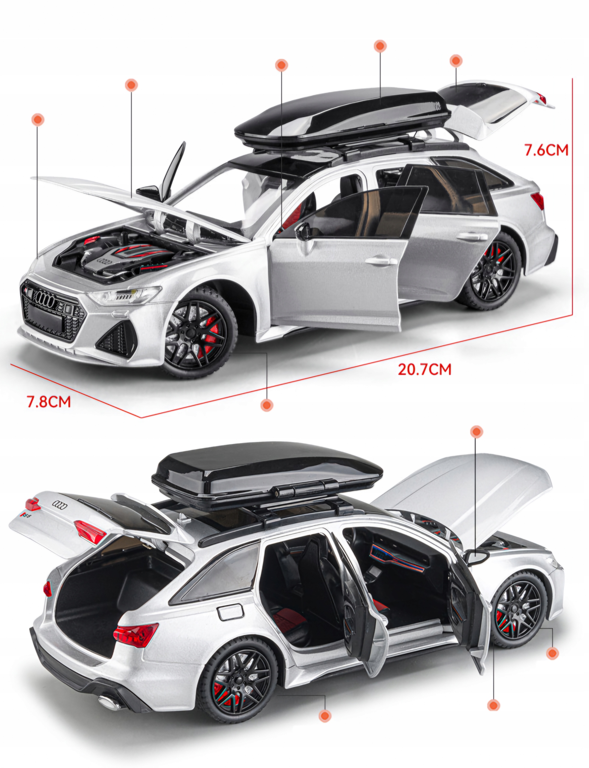 Модель Audi RS6 C8 1:24 Коробка Открывающиеся двери, капот, люк, светодиодный звук двигателя