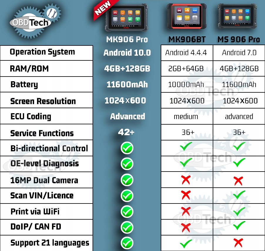 MaxiCOM MK906PRO — новейшее дополнение к линейке современных беспроводных диагностических устройств MaxiCOM. Устройство основано на операционной системе Android с максимально возможным диагностическим охватом на уровне оригинального оборудования и возможностями кодирования ЭБУ. Он использует мощный 6-ядерный процессор Exynos 5260 (четырехъядерный ARM Cortex-A7 1,3 ГГц + двухъядерный ARM Cortex-A15 1,7 ГГц), 8-дюймовый сенсорный экран HD и беспроводную связь Bluetooth на большие расстояния. Autel MaxiCOM MK906 PRO эффективно обеспечивает комплексную диагностику и анализ автомобиля.