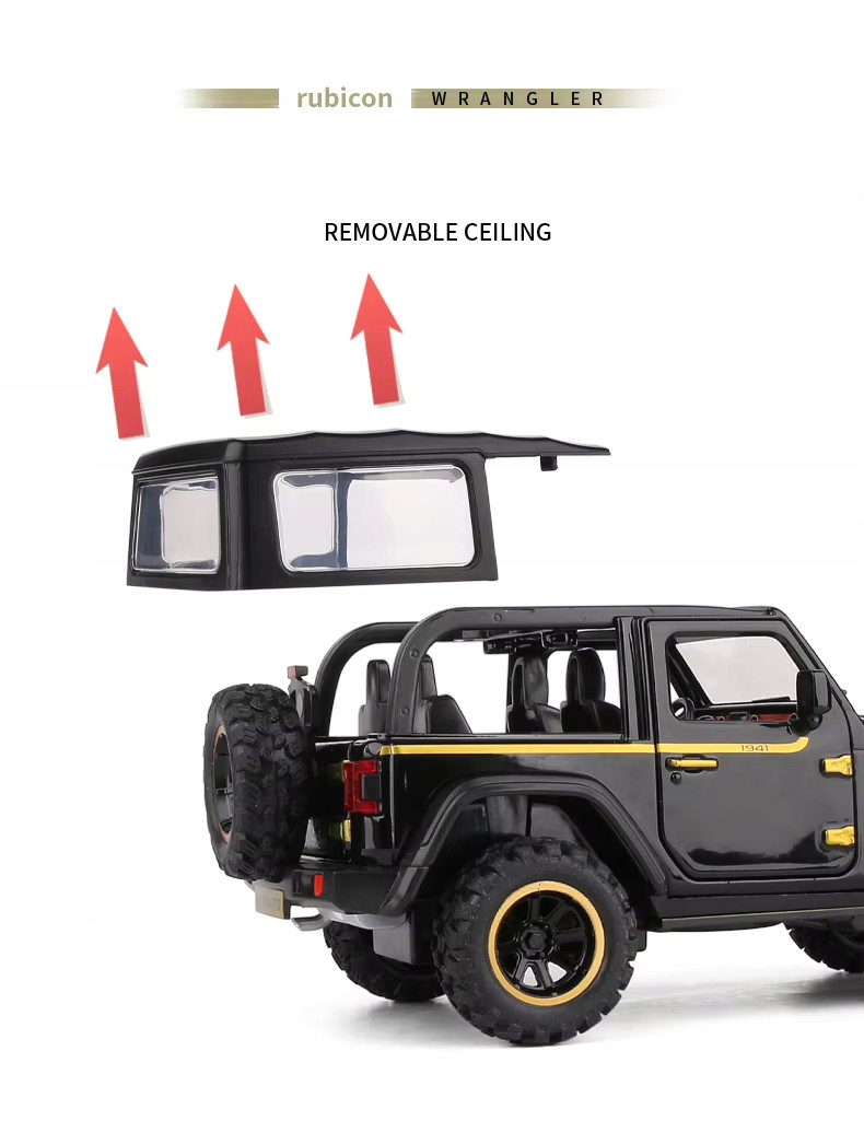 Модель автомобиля основана на культовом JEEP — JEEP WRANGLER — RUBICON 1941 года. Очень тщательно продуманный продукт. с акцентом на воспроизведение деталей.