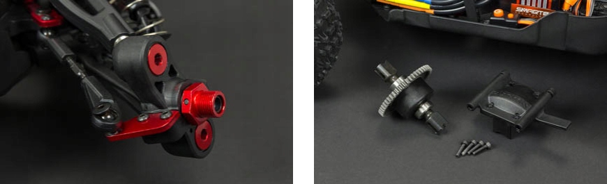 Модель TYPHON 6S BLX в стандартной комплектации оснащена тремя дифференциалами с металлическими шестернями, что обеспечивает надежность и длительный срок службы этих элементов. Легкодоступные передние и задние дифференциалы позволяют выполнить проверку всего за несколько минут. Это означает, что на обслуживание будет потрачено меньше времени, и вы сможете больше времени проводить за рулем.