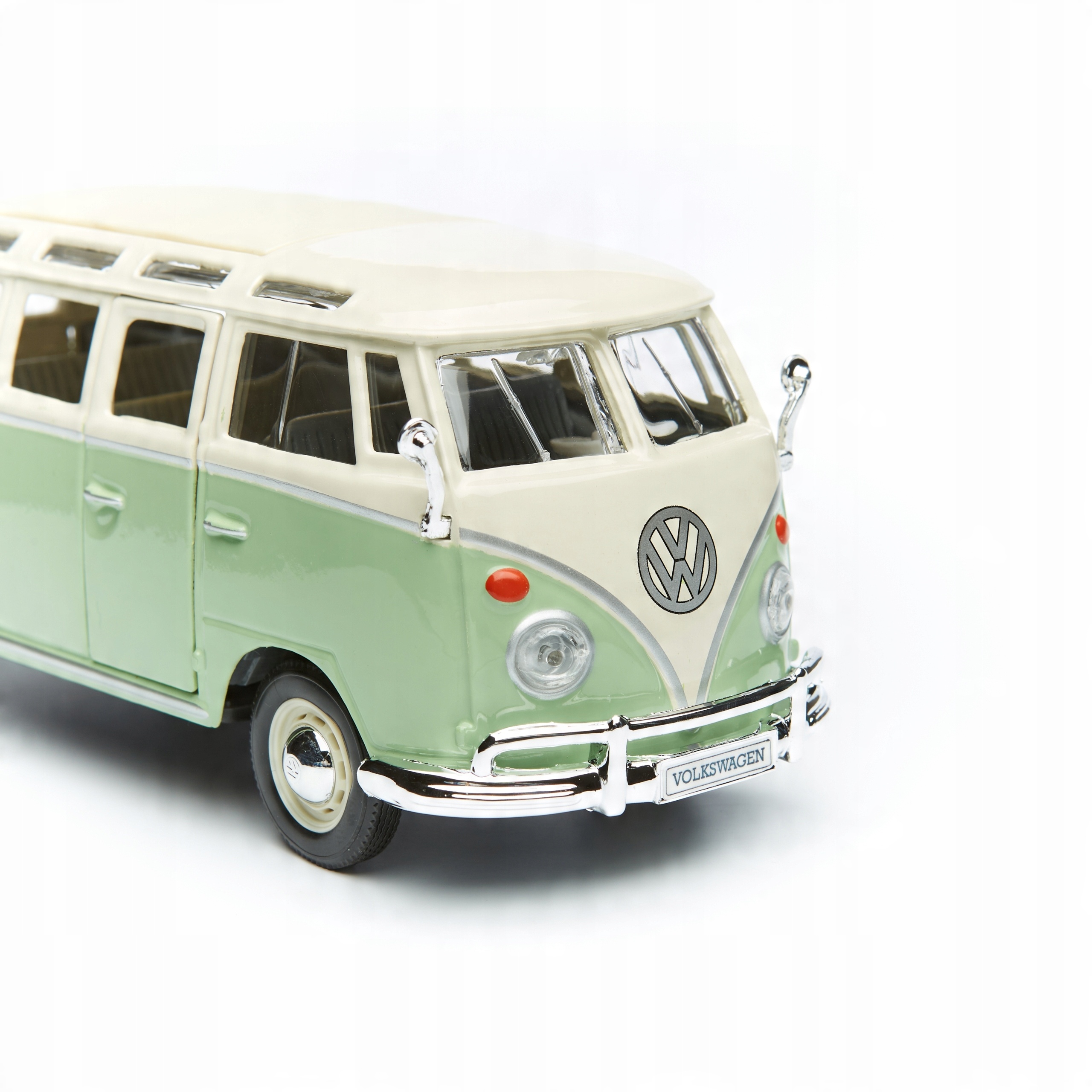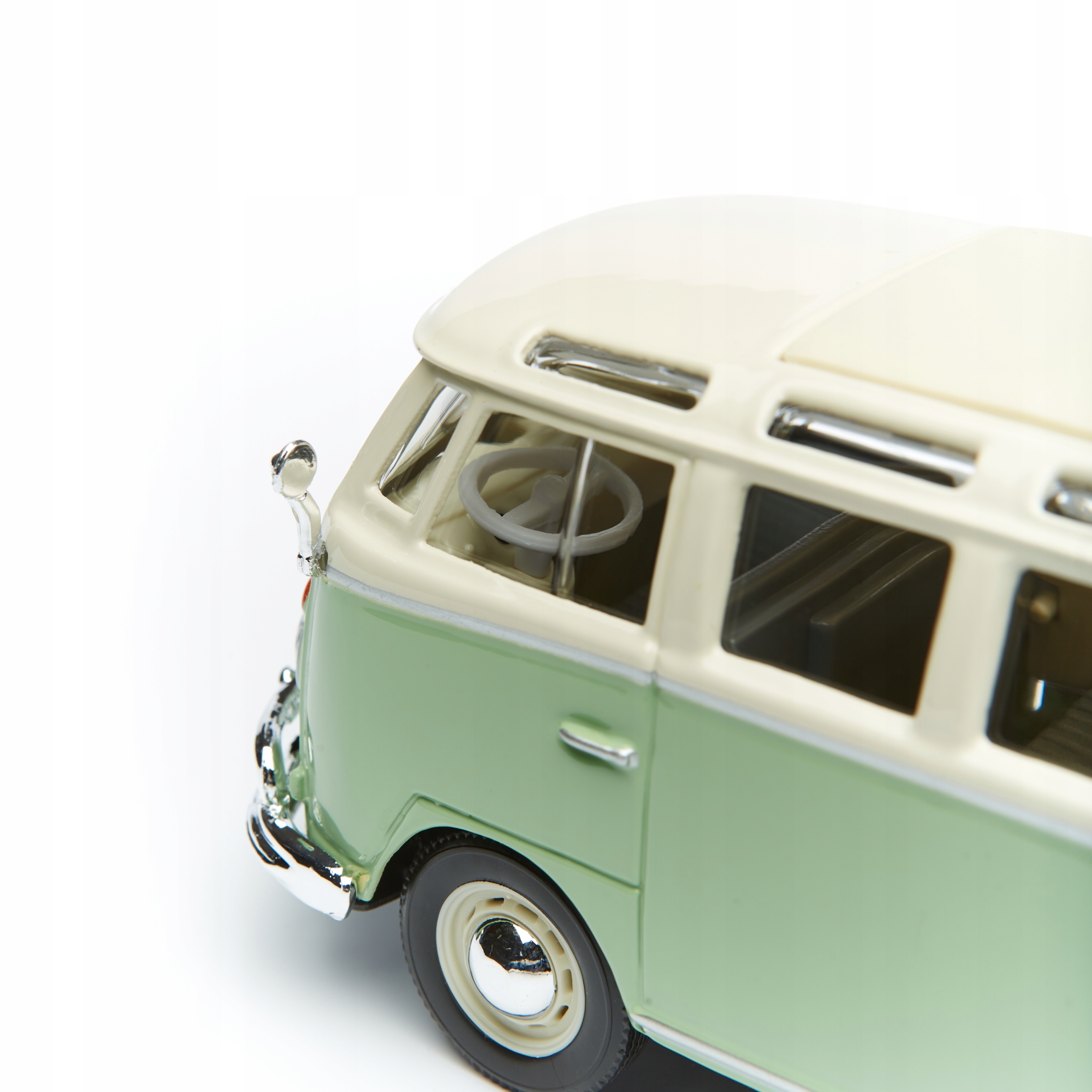 Коллекционная металлическая модель автобуса Volkswagen VW T1 Van Samba 1961 года выпуска в масштабе 1:25 от Maisto. Каталожный номер: 31956 / 31956Gr / 31956G