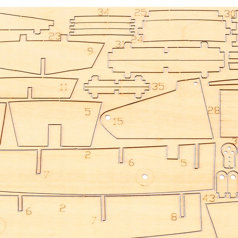 Элементы корабля вырезаны из фанеры, их нужно аккуратно разломать и собрать по инструкции, приклеив к корпусу. суставы.