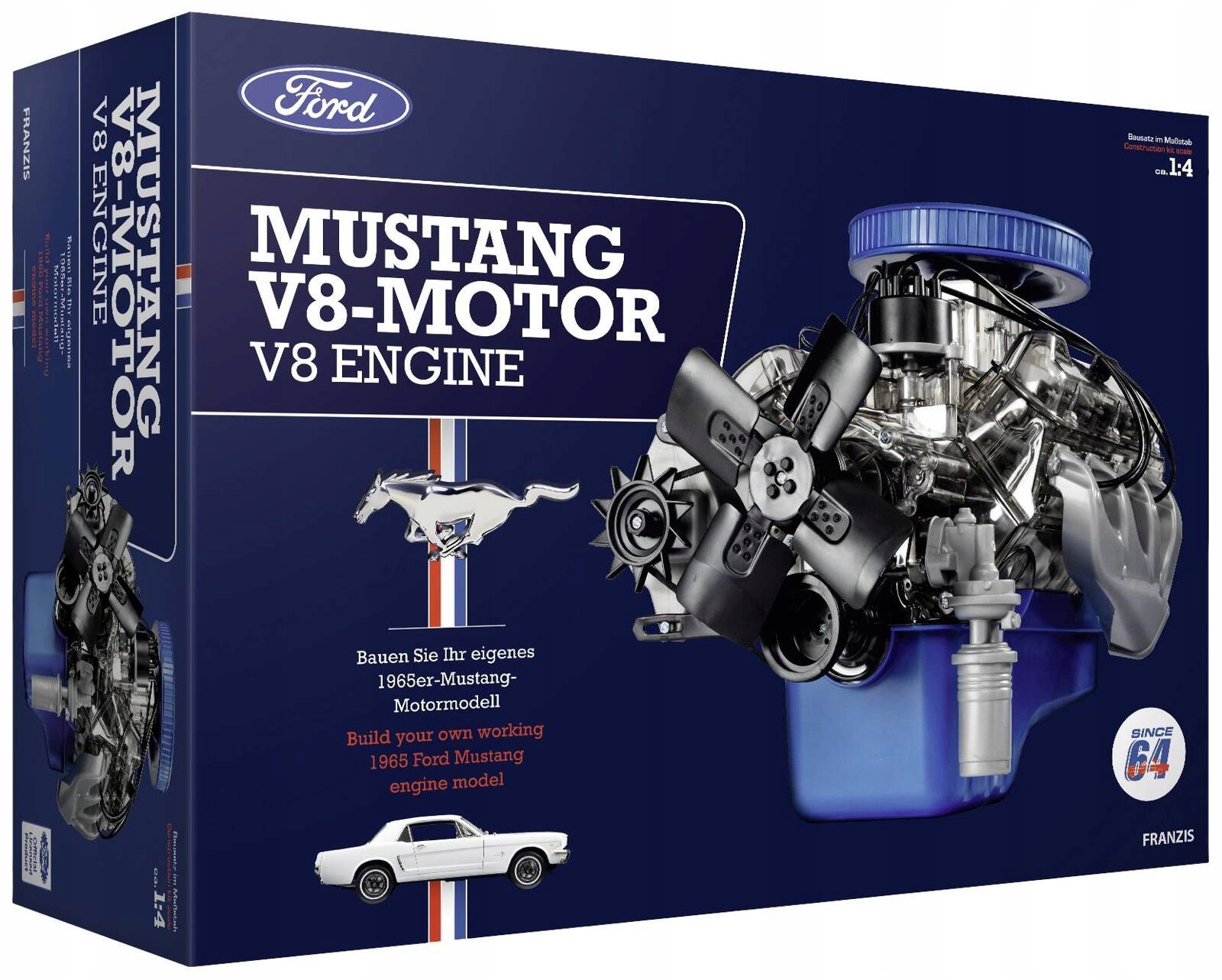 Двигатель Ford Mustang V8 | Сборочный комплект из 200 деталей — прозрачная, полнофункциональная модель двигателя в масштабе 1:4 для автолюбителей своими руками | от 14 лет