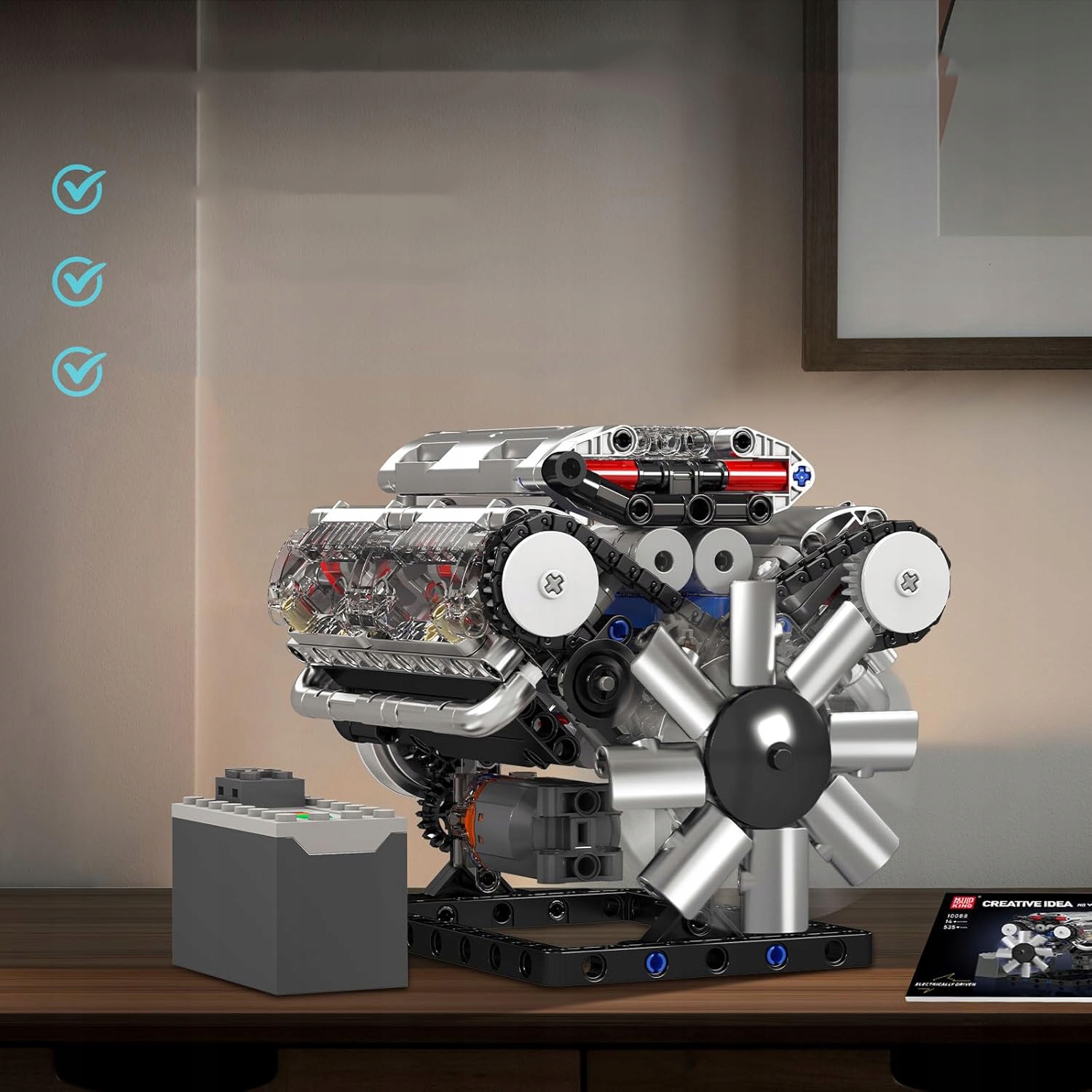 🚉🚉Двигатель V8: Нажмите кнопку запуска на наборе моделей двигателей V8, чтобы почувствовать возрастающую силу, создаваемую вращающимся маховиком, и ощутить азарт суперкара во время сборка.