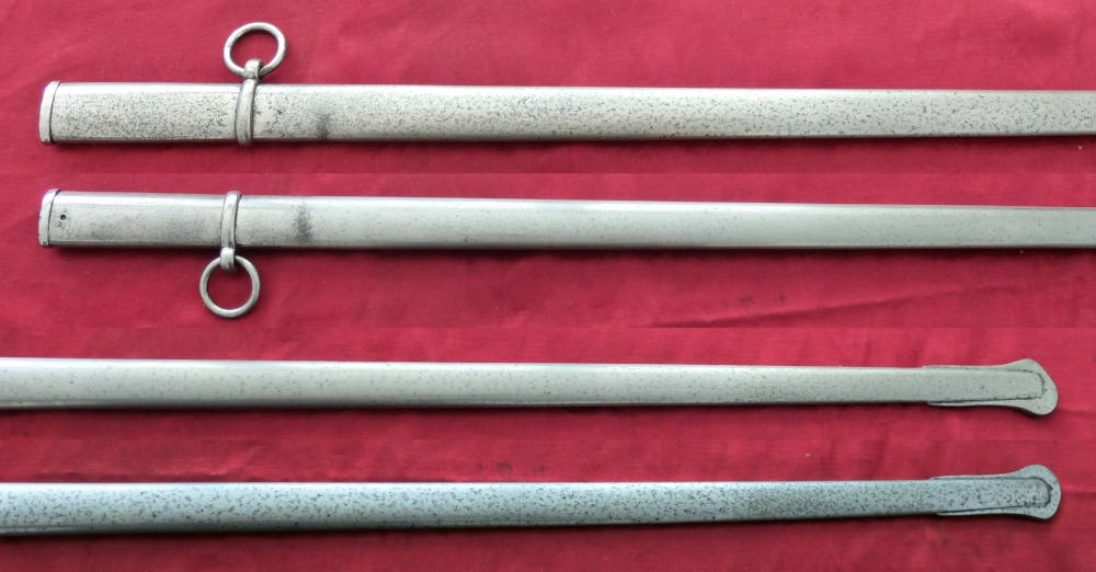 Ножны не имеют отверстий и не мнутся. Имеет оригинальный хром, но есть небольшие сколы. Направляющая ножен функциональная, клинок хорошо помещается в ножнах.