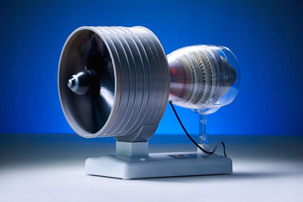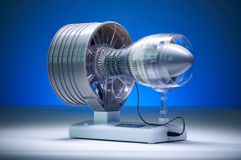 Эта модель реактивного двигателя полностью функциональна, имеет моторизованные детали и реалистичные звуки. Он имеет турбины высокого и низкого давления и прозрачный корпус, позволяющий видеть движущиеся части. Фантастическое введение для детей в моделирование строительства и инженерного дела.