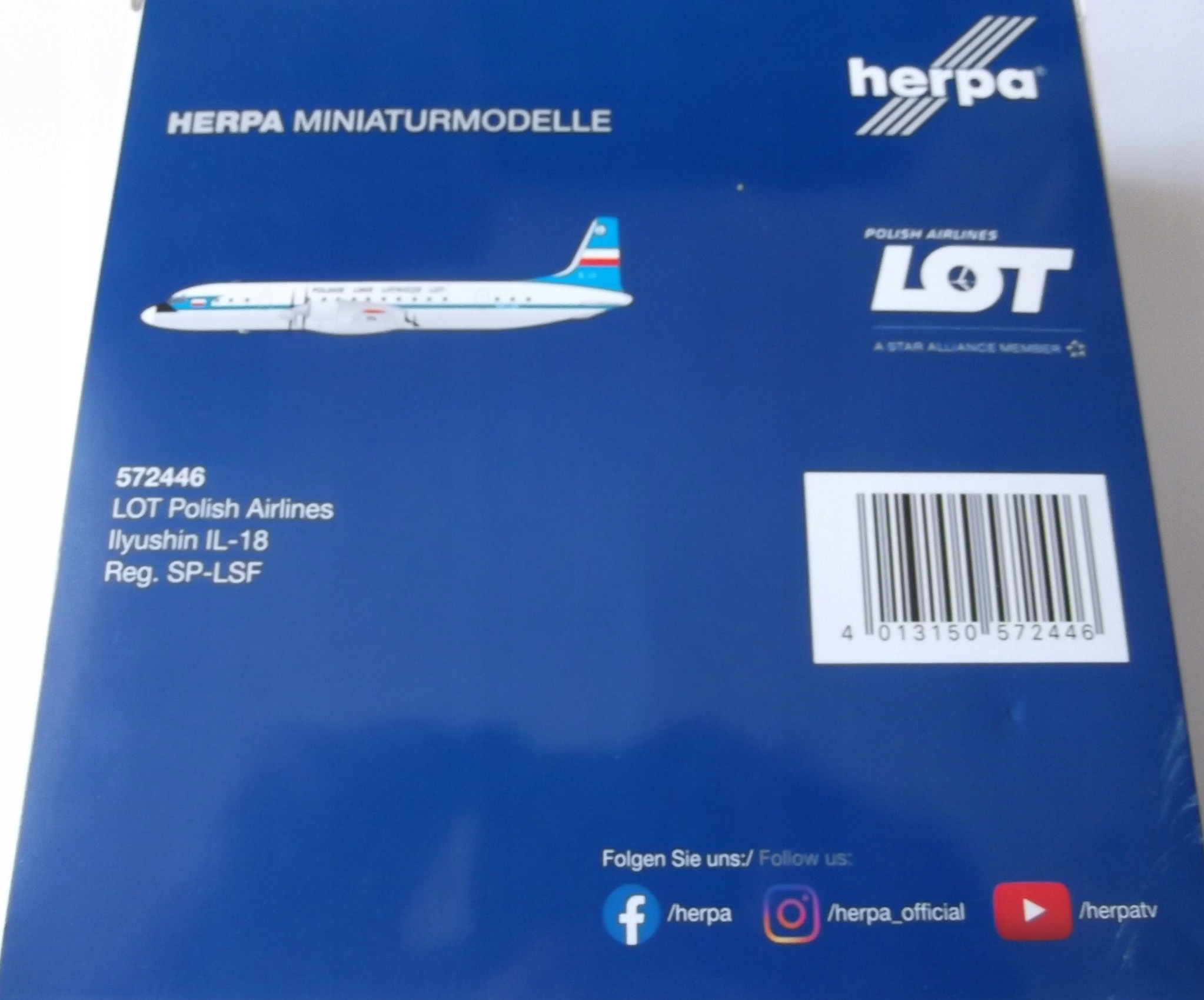МОДЕЛЬ ІЛ-18 PLL LOT SP-LSF 1960-х HERPA 1/200 промо
