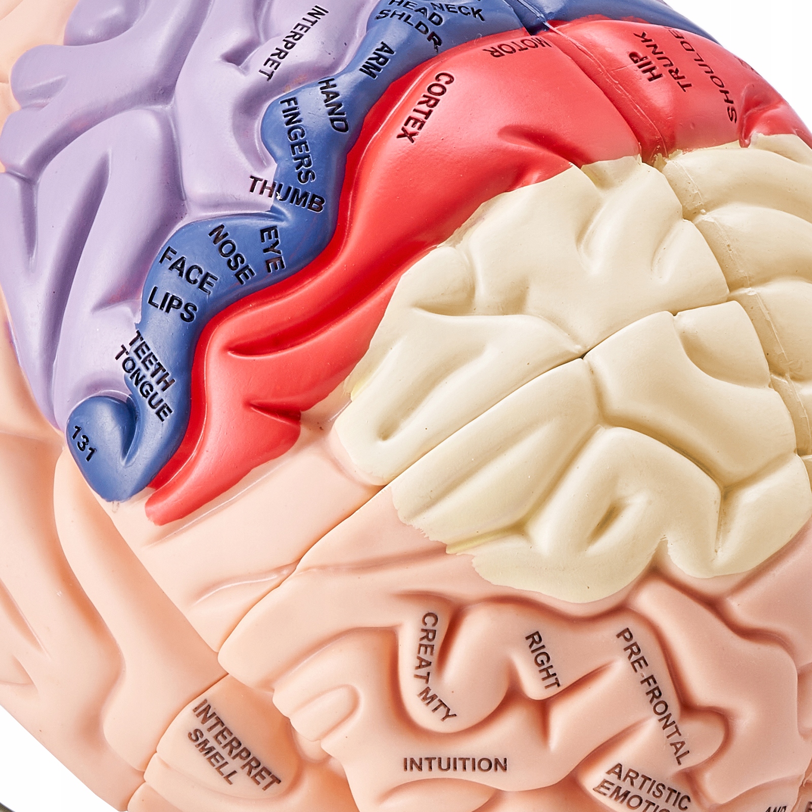 Наша модель человеческого мозга изготовлена из прочного ПВХ-материала. Он долговечен и легко чистится, а мелкие рисунки и надписи облегчают обучение.