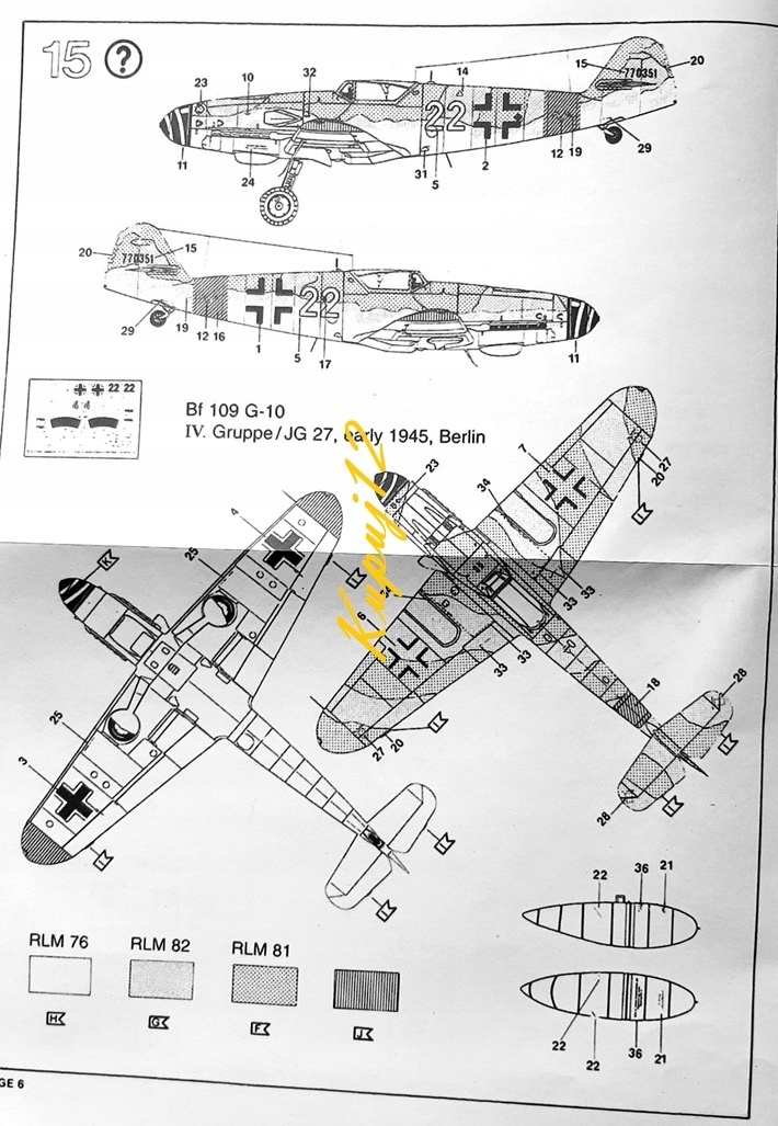 это должно быть окрашено 1- раз все элементы, которые позже будут окрашены внешними красками. Некоторые элементы могут потребовать покраски перед склеиванием (например, центр кабины или элементов крыла у прикрепления колеса)