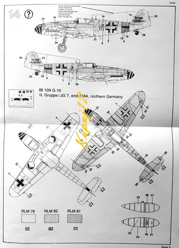 Набор включает в себя пластиковую модель для прилипания самолетов Messerschmitt BF 109 G-10 по шкале 1:72
