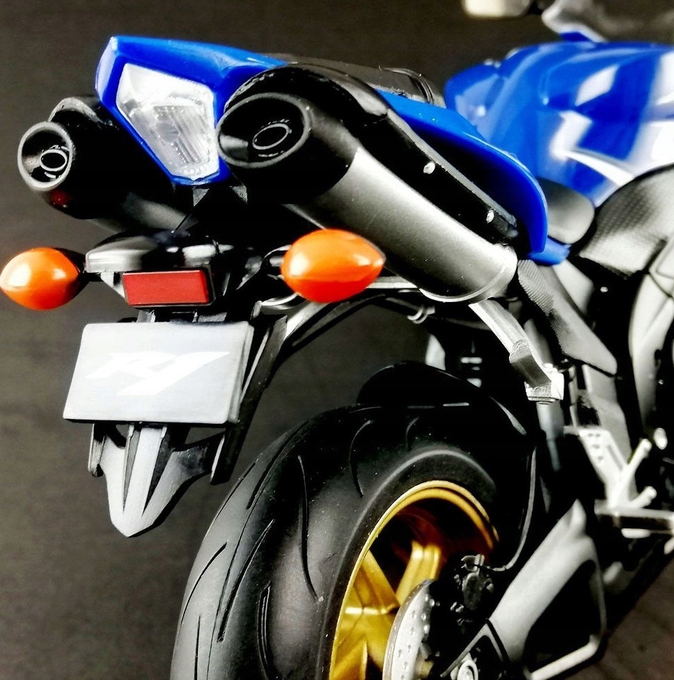 Модель мотоцикла Yamaha характеризуется вниманием к деталям. У него есть движущиеся элементы: колеса, рулевое колесо, задний маятник, боковая нога.