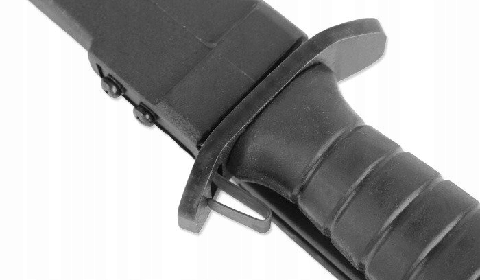 Ножны изготовлены из ударопрочного пластика черного цвета. Имеет две проушины для крепления к ремню шириной до 32 мм и 60 мм и два отверстия для ленты, веревки или паракорда в нижней части. Нож крепится к ножнам благодаря пружинной защелке, проходящей через отверстие в крестовине.