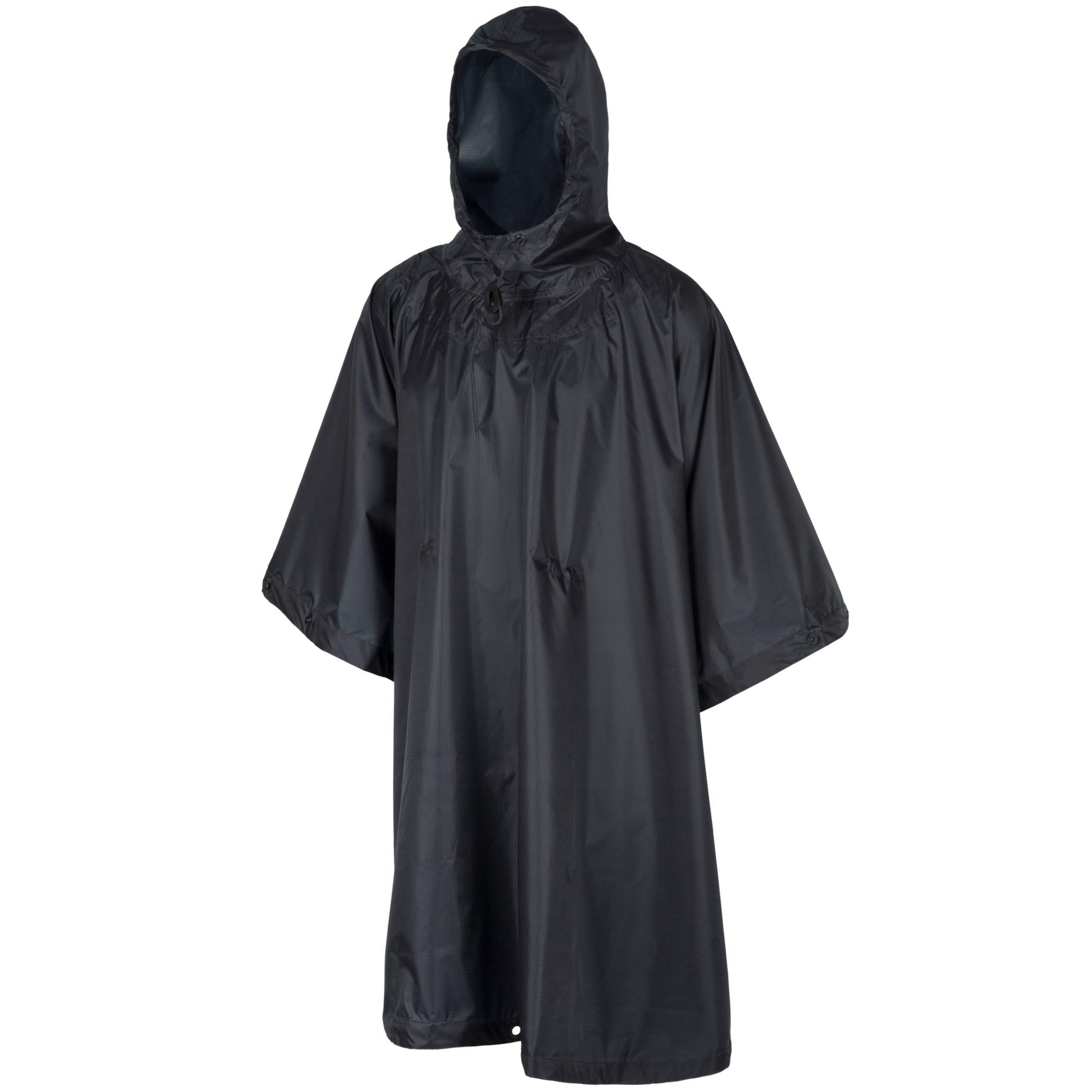 Водонепроницаемый, быстросохнущий плащ, изготовлен из полиэстера Rip-stop. > материал. Пончо имеет кнопки, позволяющие сшить рукава или соединить две одинаковые накидки между собой. Капюшон оснащен шнурком-кулиской. Большим преимуществом накидки является легкий вес и небольшие габариты в сложенном виде - упаковывается в сумку размером 14 х 22 см.