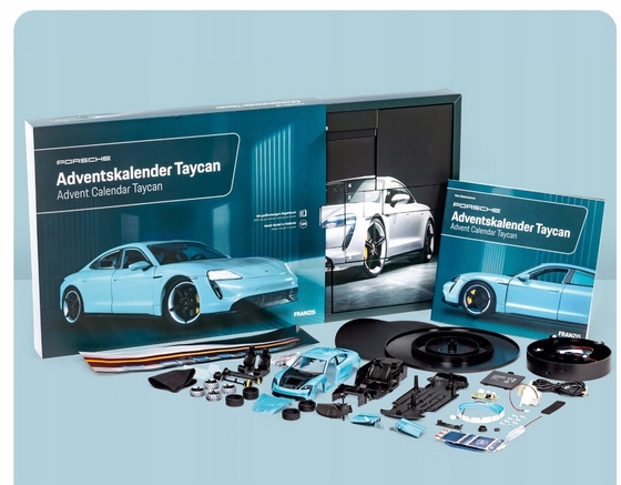 Прилагаемая книга описывает историю развития и технические детали Porsche Taycan и содержит подробные инструкции по сборке модели автомобиля, состоящей из одиннадцати частей, а также весь остальной контент календаря. Таким образом, сборка происходит легко и без стресса - и имеется много эмоционального графического материала!