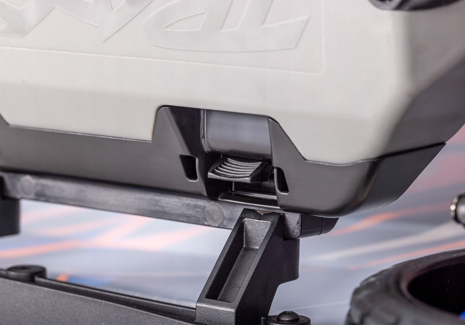Инновационный ралли для тела Snap обеспечивает безопасное крепление и быстрое разборку. Нет баров или запонок - просто опустите корпус на шасси и хлопнули. Когда наступит время замены батареи, отпустите боковые снимки и поднимитесь, чтобы получить доступ к шасси через несколько секунд.