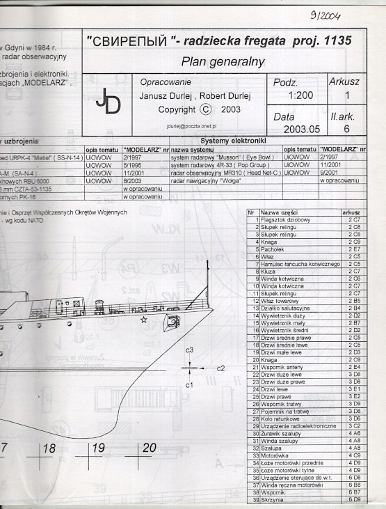 Только вставка из Modelarz 9/2004: фрегат проекта 1135 Swirepyj, лист 1 и 6/6.