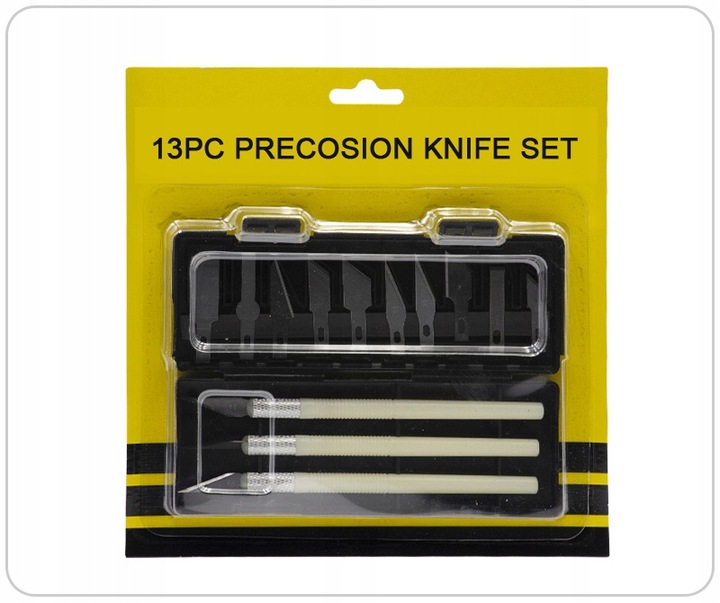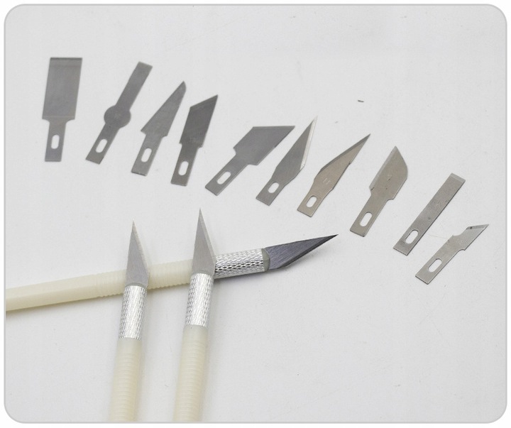 • 13 сменных лезвий различной формы – для деталей, резки, резьбы, снятия фасок.