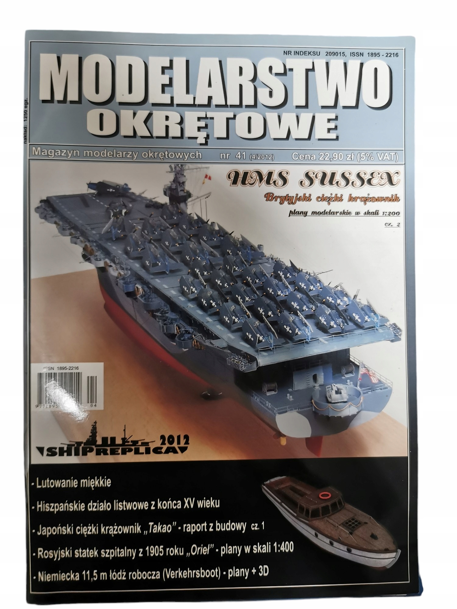 А4 Формат, страницы 46. В этом выпуске планы британского тяжелого крейсера из Второй мировой войны HMS Sussex (большая формат вставка).