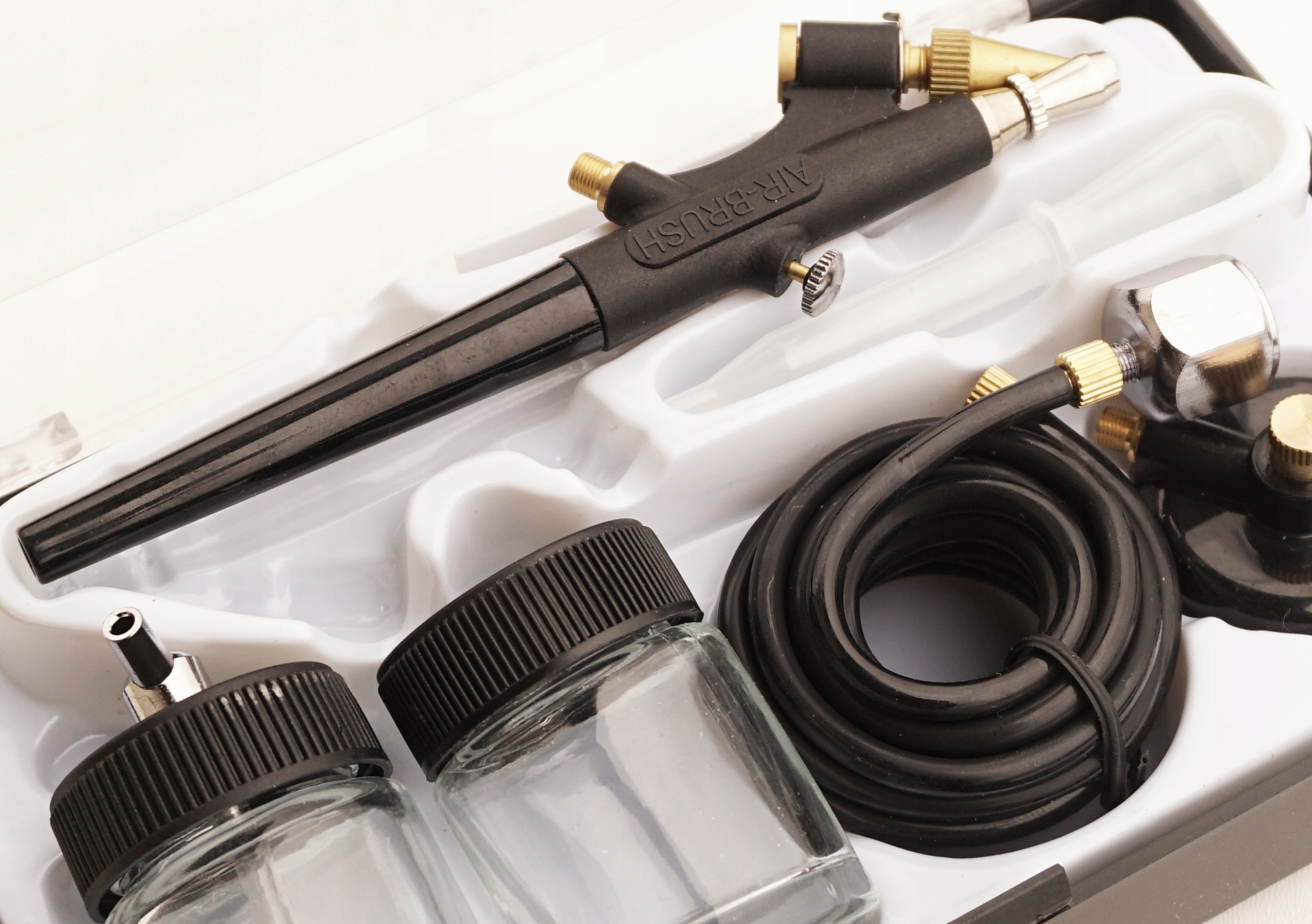 Аэрограф оснащен практичным ящиком, в котором хранятся все элементы.