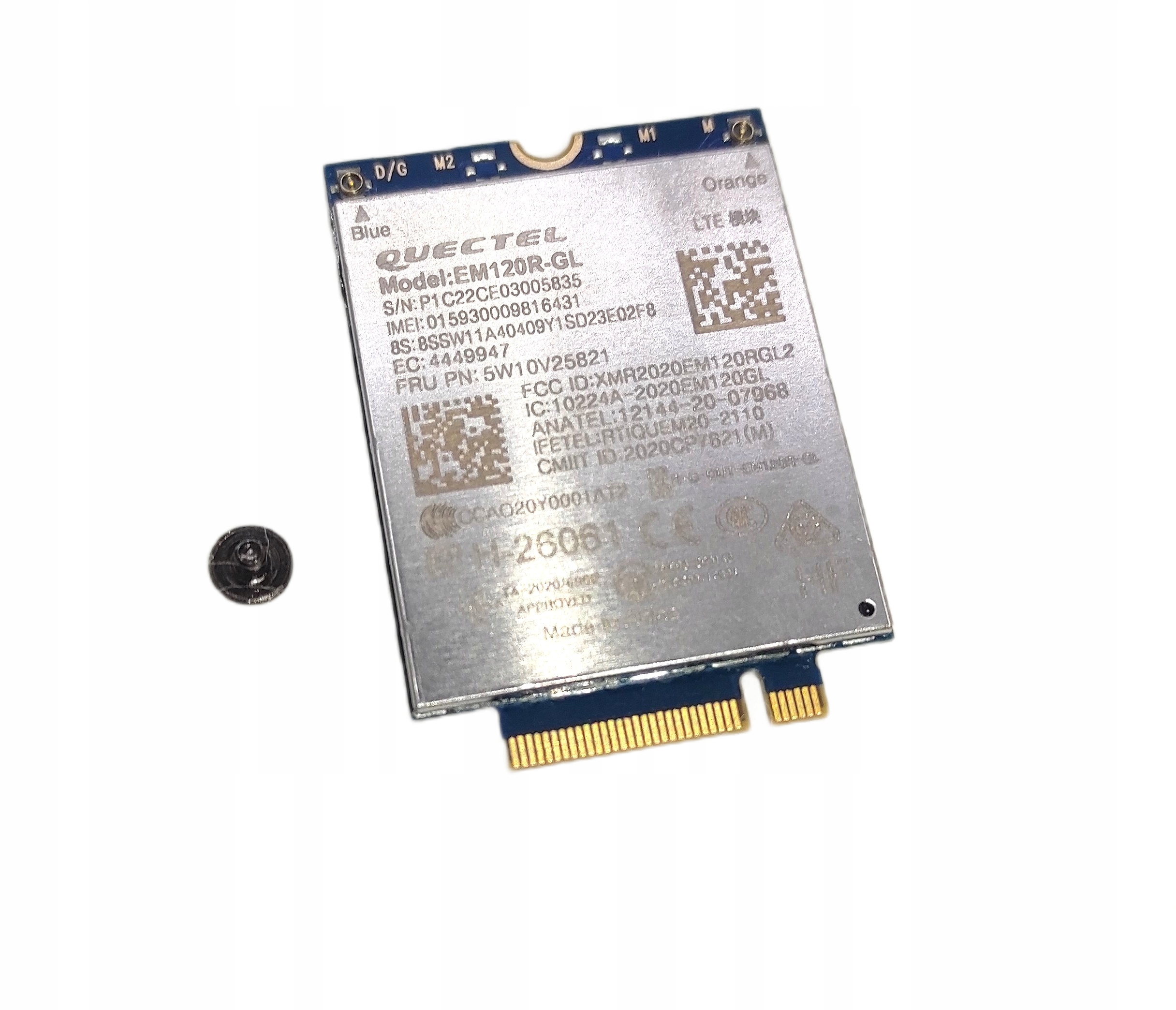 Используется предмет продажи, полностью функциональный модем 4G LTE от Quectel, модель: EM120R-GL (FRU: 5W10V25821), удаленная с ноутбука Lenovo ThinkPad X1 Carbon 9 Generation . Визуальное состояние в соответствии с фотографиями (мы отправляем из доступных предметов).