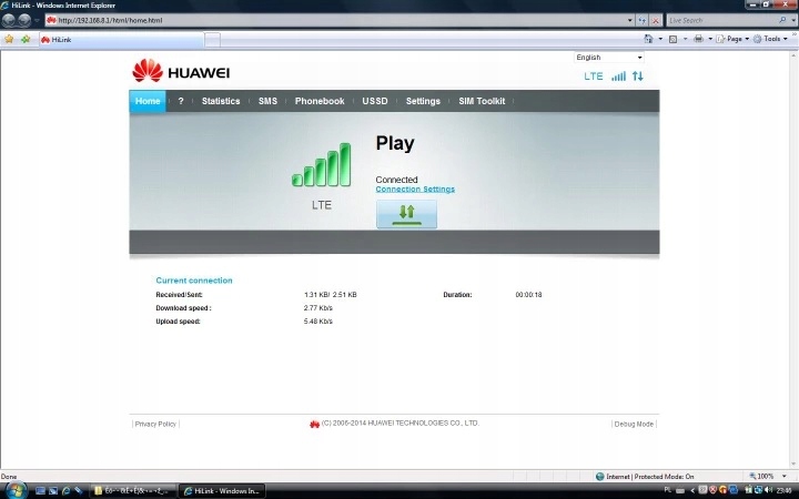 Модем LTE4G Huawei E3372 T-Mobile Plus Play Orange