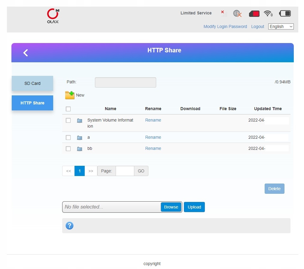 После установки карты MicroSD модем также можно использовать как флэшку или как сервер данных, к которому у нас есть доступ и которым мы можем управлять через веб-браузер.