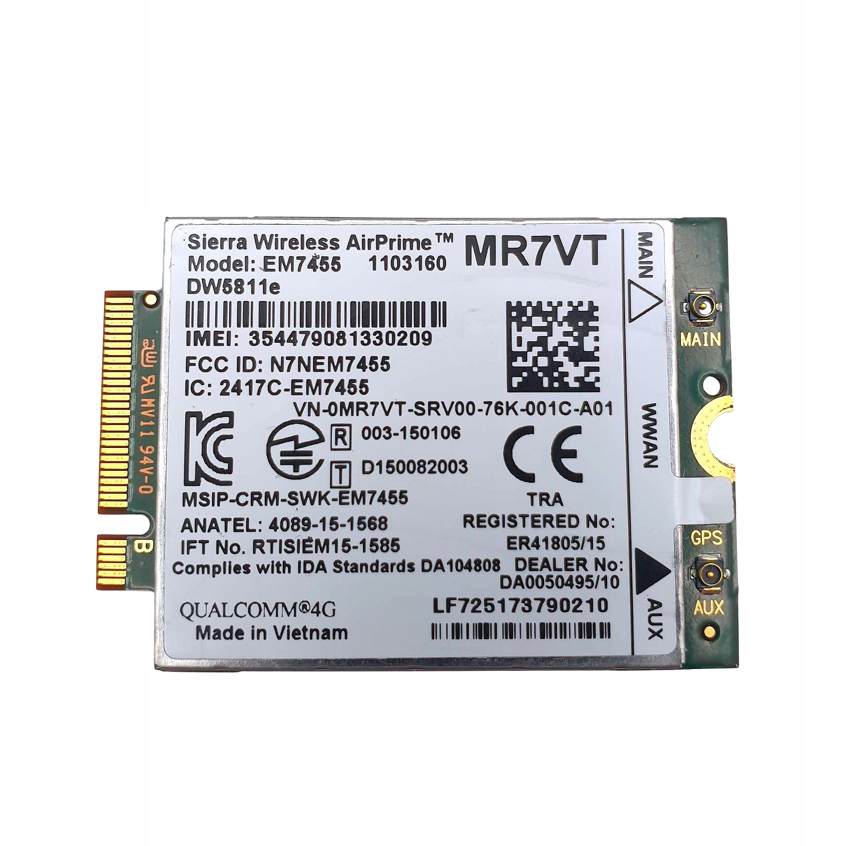 Представляем оригинальный модуль WWAN от Sierra AirPrime EM7455 (DW5811e), предназначенный для ноутбуков Dell. Карта обеспечивает очень хорошее LTE-соединение со скоростью до 300Мбит/с, имеет встроенный GPS.