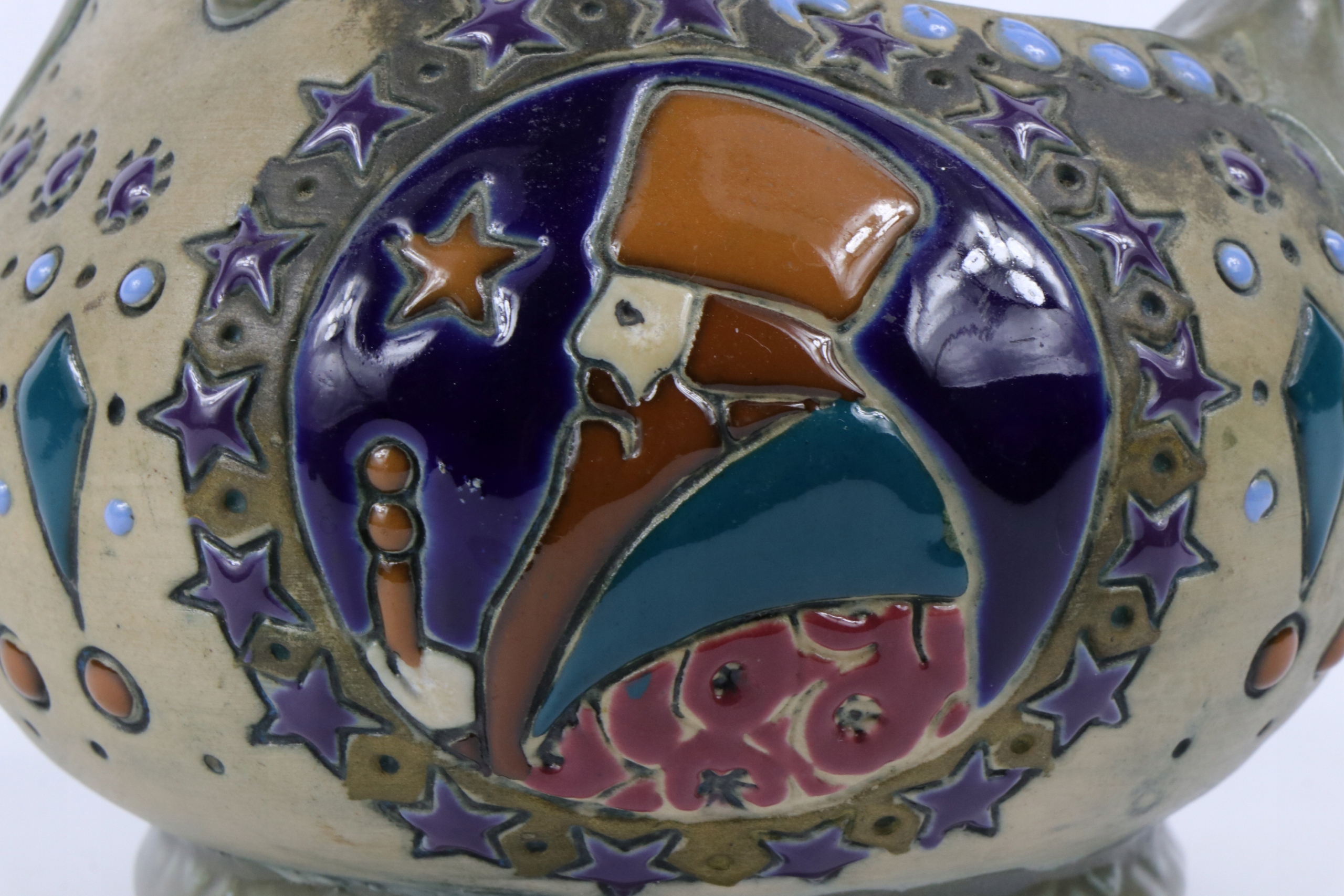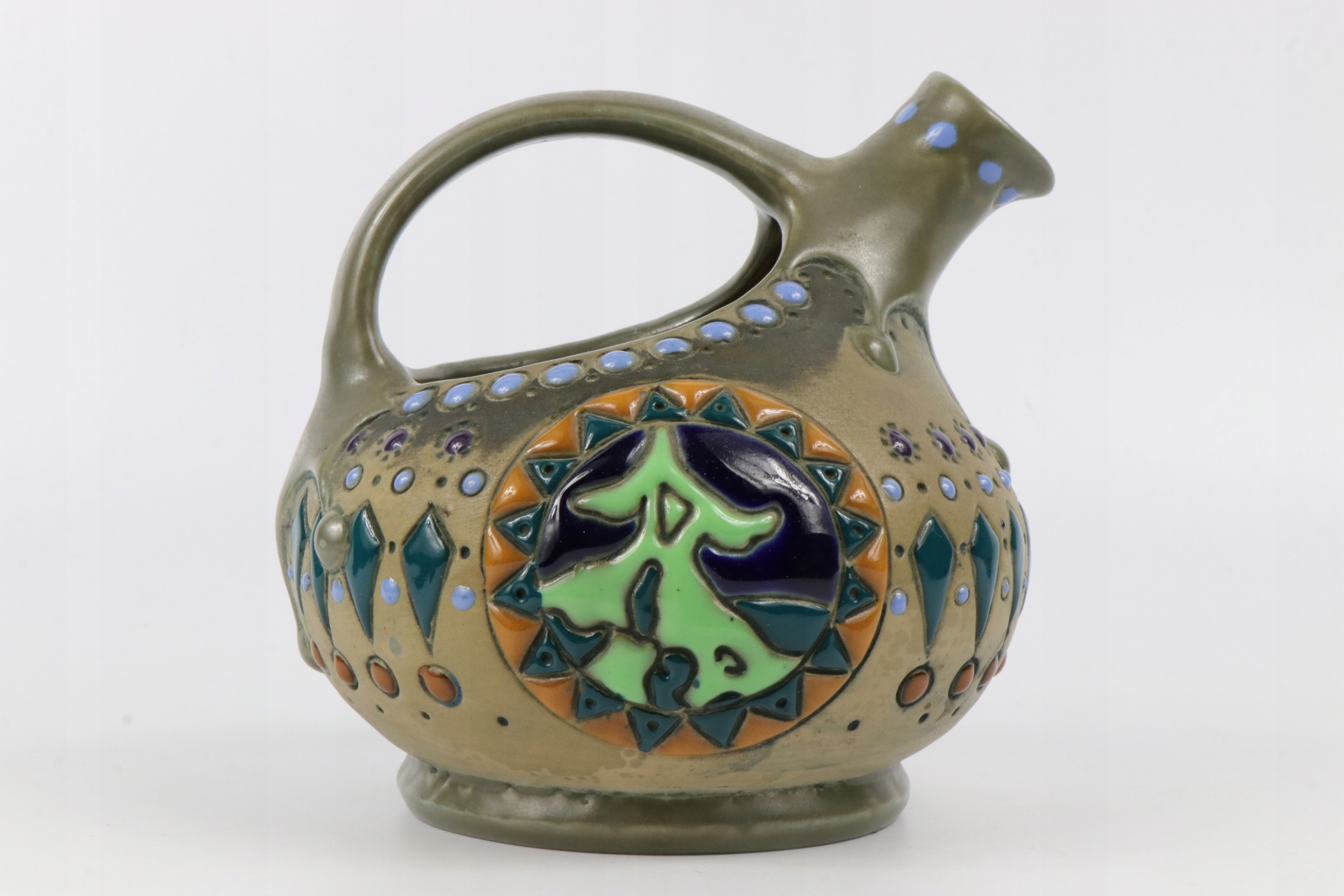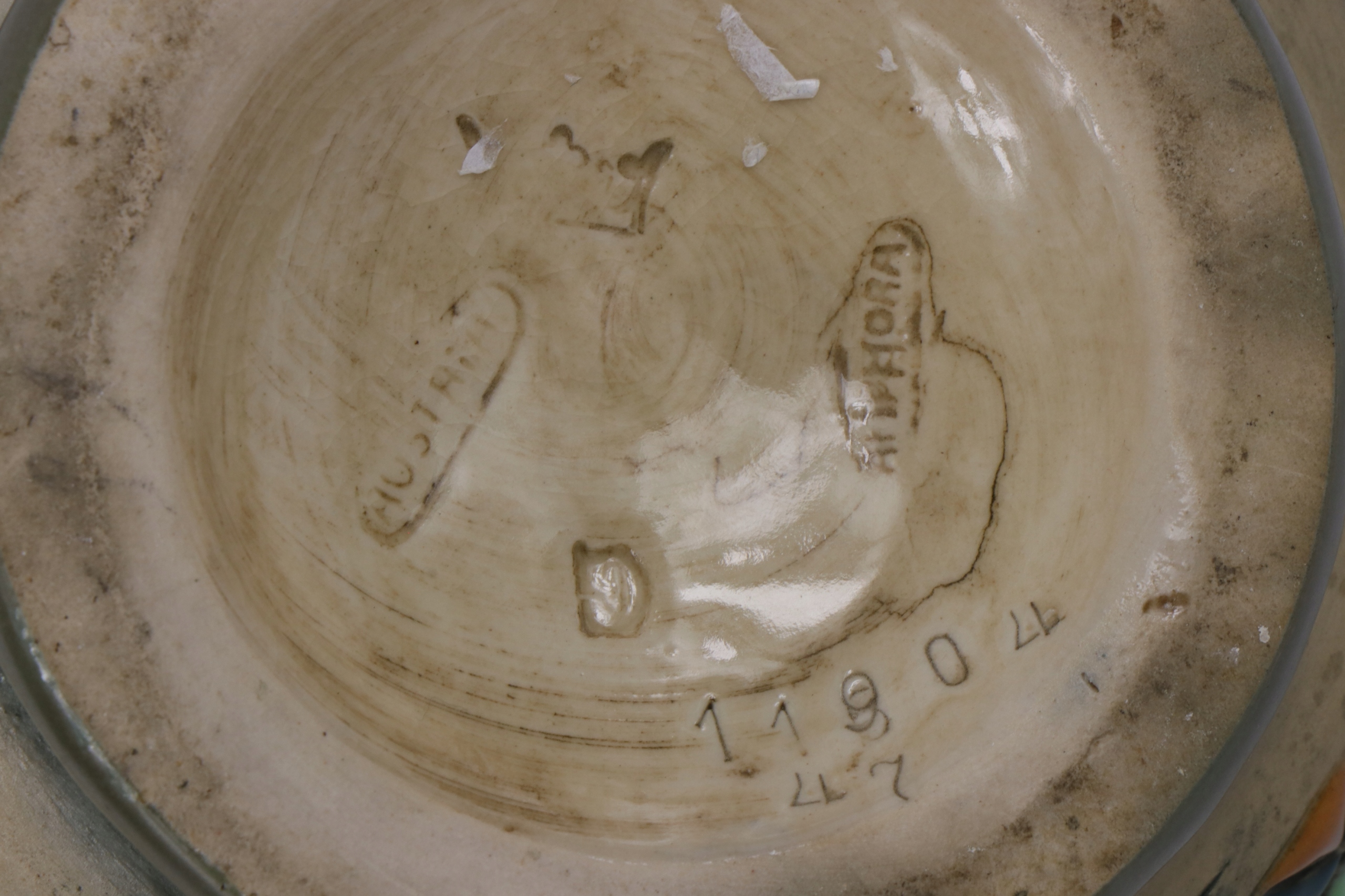 Кувшин, подписанный знаком «Австрийская амфора» начала XX века. Кувшин с толстой глазурью в характерном стиле фабрики «Амфора».